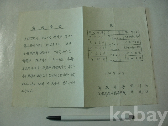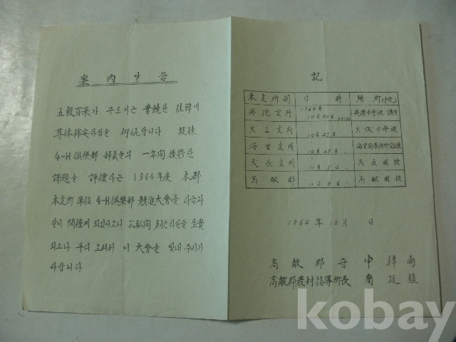 4-H구락부 - 경진대회 개최 안내 (1964년, 고창군수)