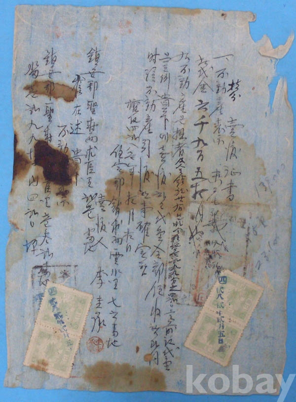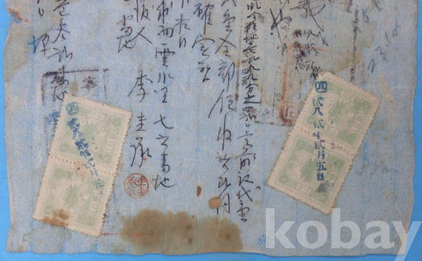 RP 25* 1948년 동대문시리즈 5원 수입인지 4매첨부 鎭安郡 賣渡證書