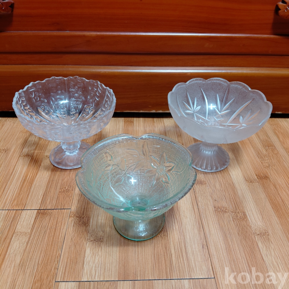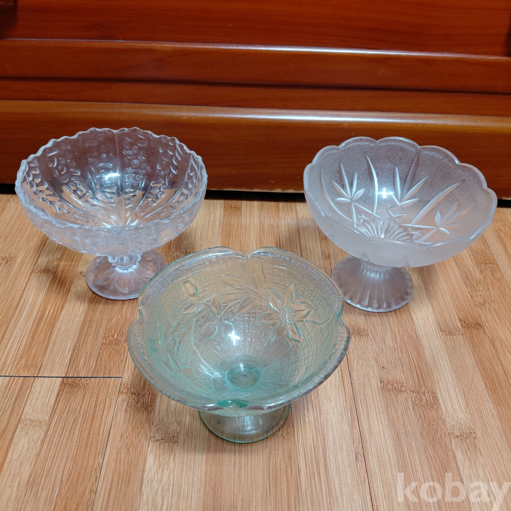 빈티지 추억의 제과점 팥빙수 유리잔 세점 일괄 올려드립니다