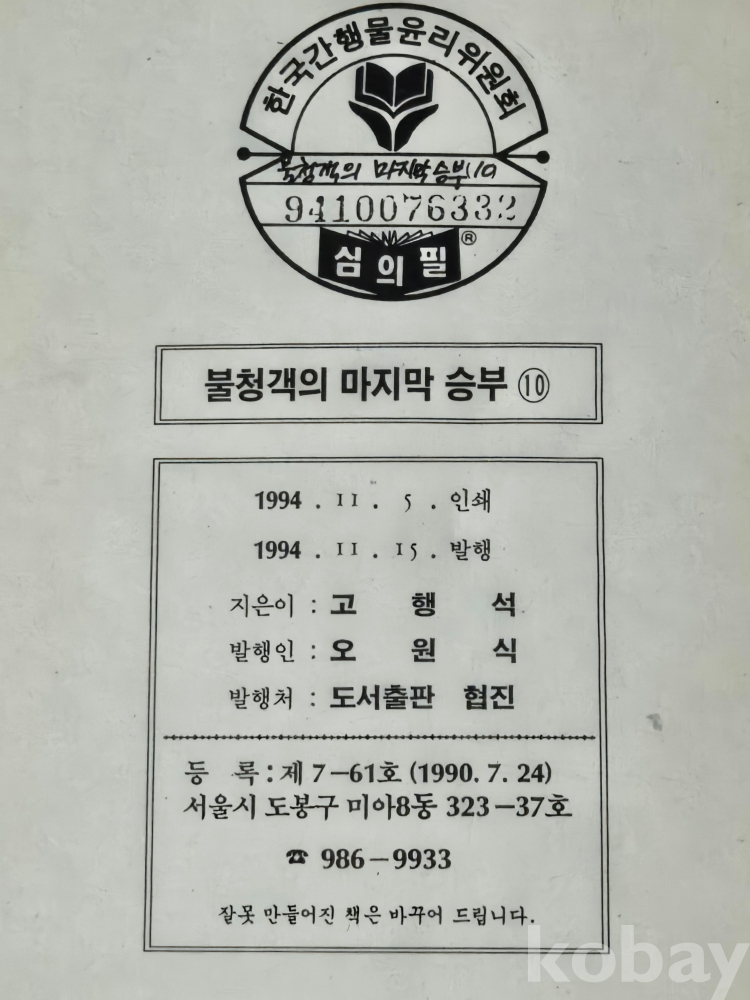 고행석 극화 만화 시리즈 == 불청객의 마지막 승부 10권 완결 =