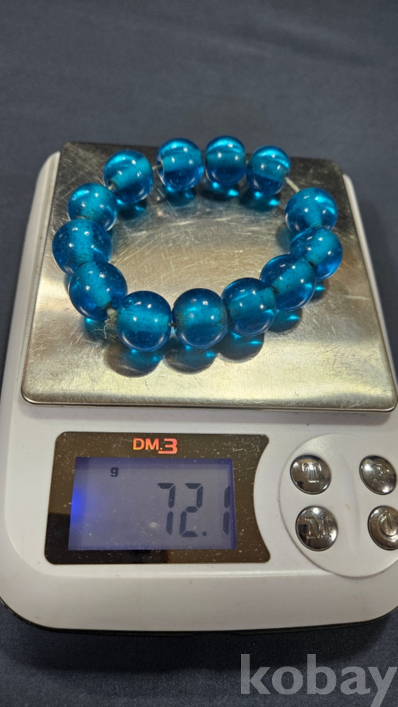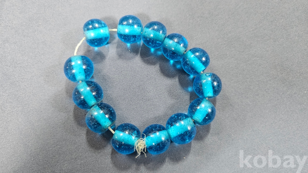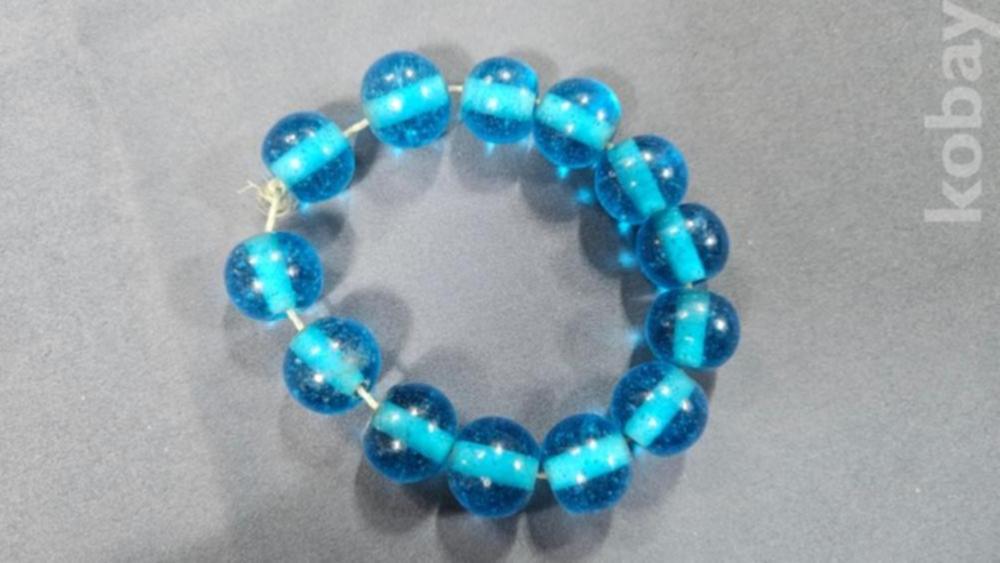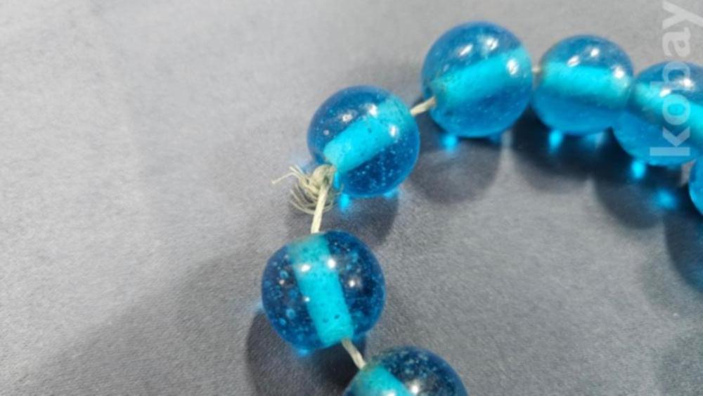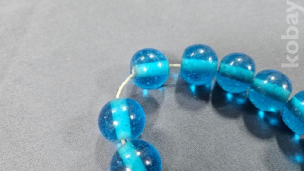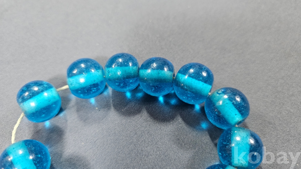 자세히 보면 기포가 보이는 유리재질의 파란색 팔찌입니다.
