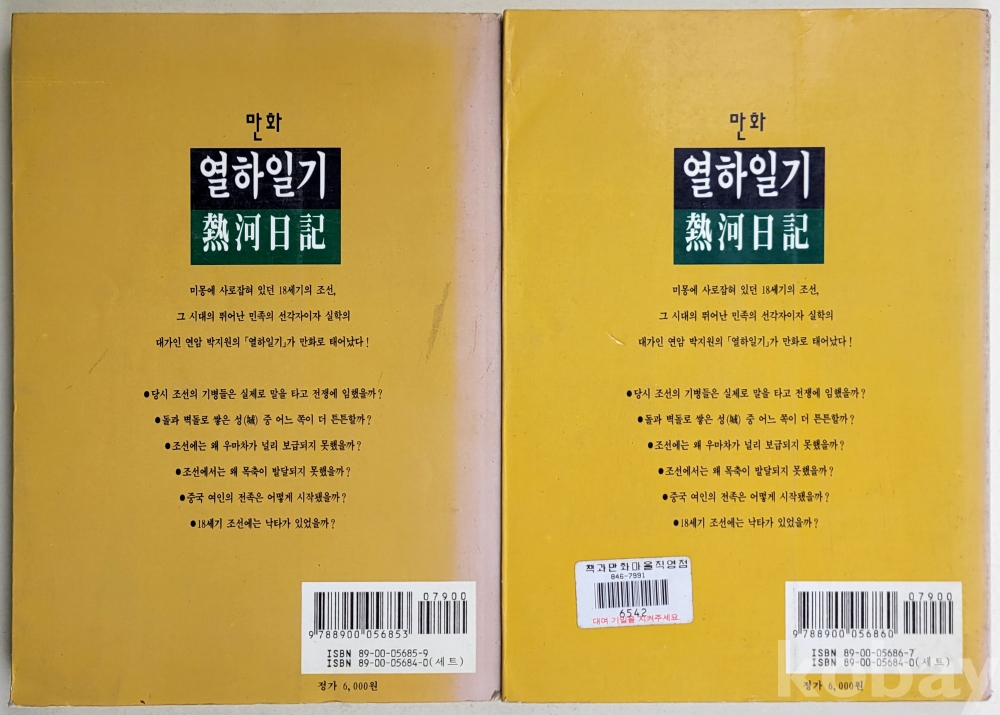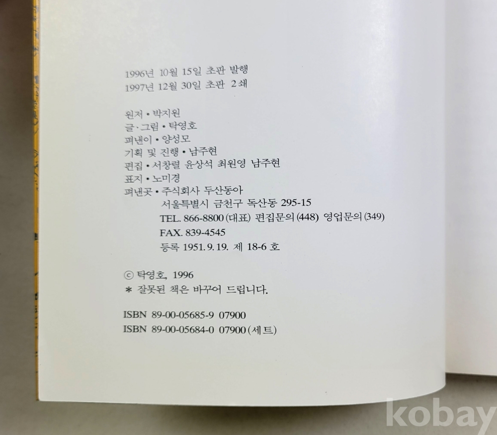 물 품 명 | 탁영호 / 만화 열하일기(상,하)완결 총2권 / 1997년 / 두산동아 |