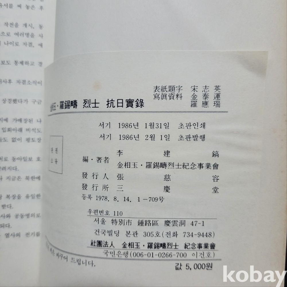 [희귀본] 항일실록 (김상옥,나석주 /1986년 초판) ; 중급/서고I08