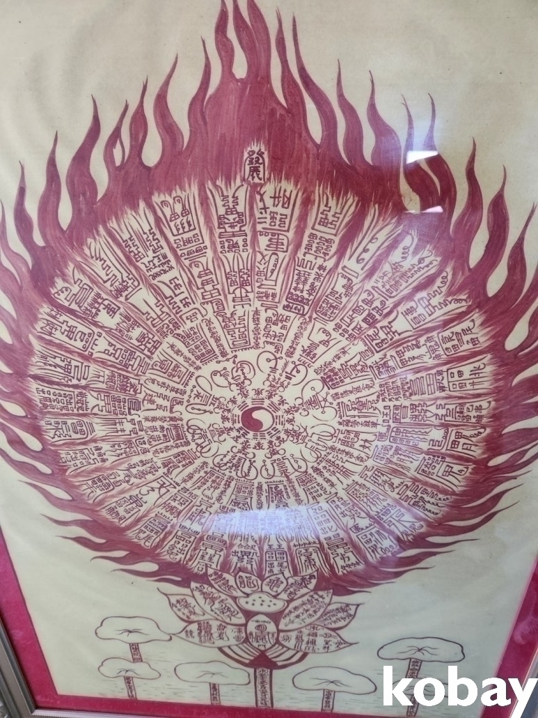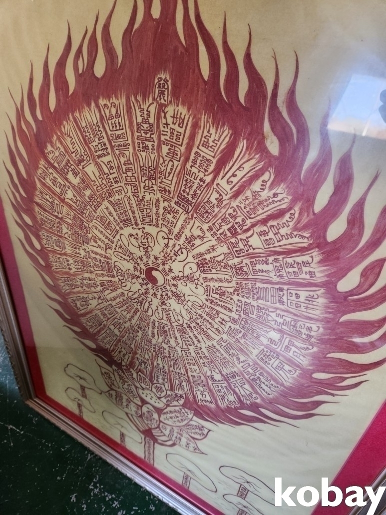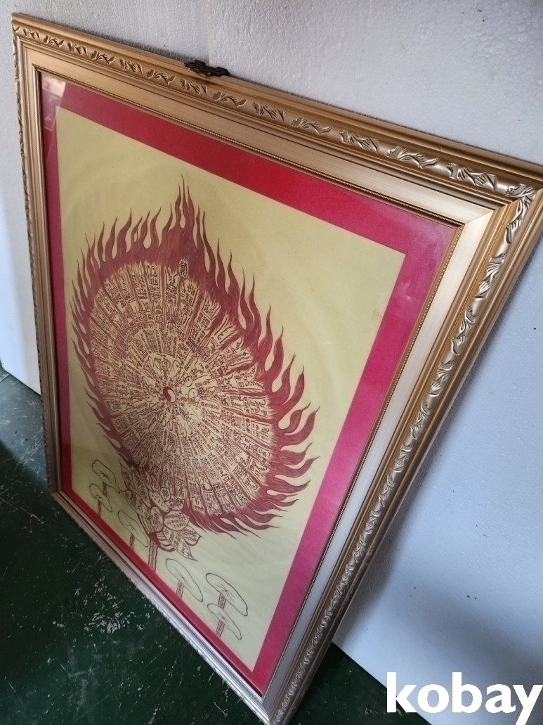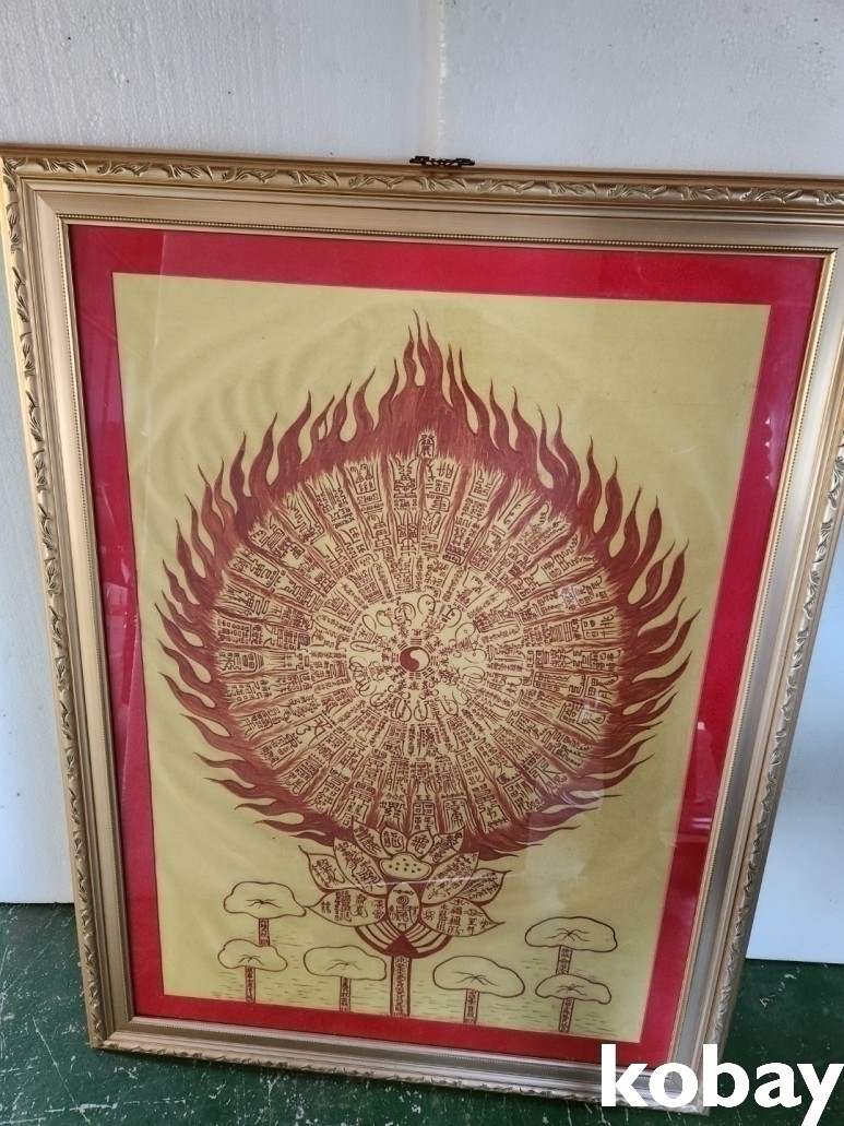 연꽃, 태극 문양에 불꽃 모양의 그림 액자 입니다.