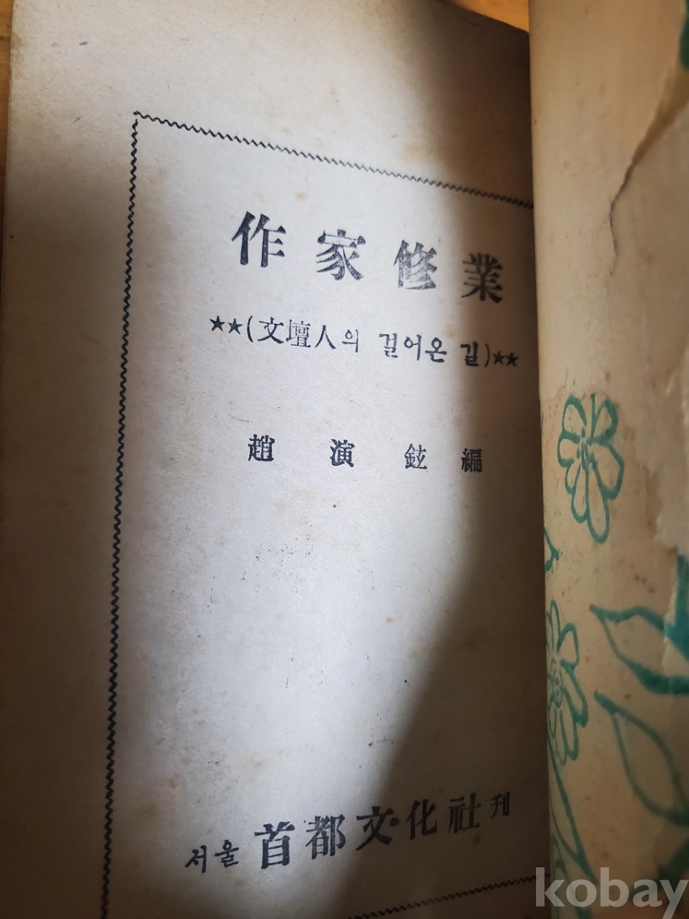 1. 작가수업 - 문단인이 걸어온 길, 조연현, 음악문화사, 1951년, 118쪽, 상태 중, 사진 참조