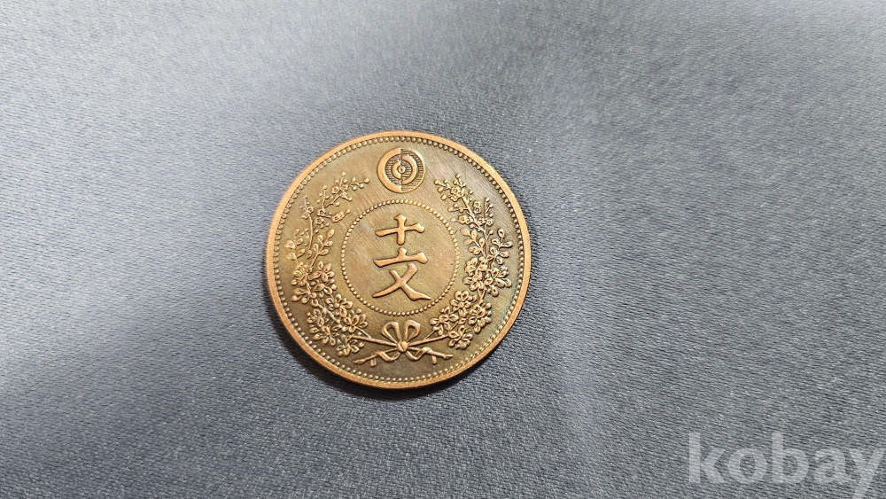 한글 '십문' 이라 들어있는 구리색 주화입니다.