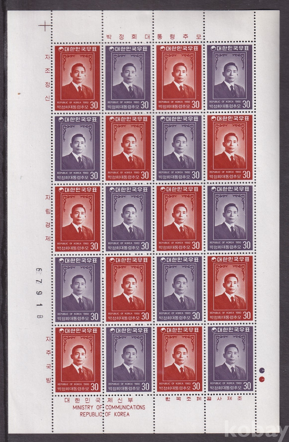 - 미사용 1980년 박정희 대통령 추모 20매 전지