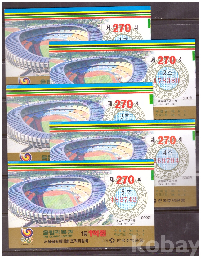 (서울올림픽) 1988 서울올림픽복권 제270회 1,2,3,4,5조 올림픽주경기장(육상, 축구, 승마)