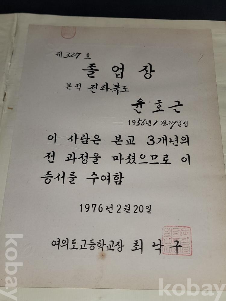 빈티지 세월 감이 느껴지는 희귀한 1976년 여의도고등학교 제1회 졸업앨범과 여의도고등학교 졸업장 등 일괄입니다.