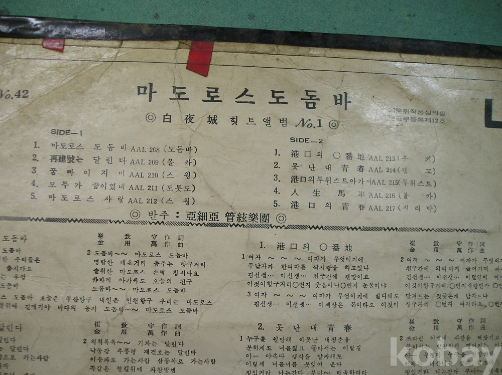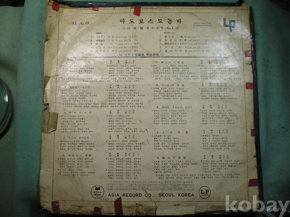 | 자켓상태 | VG : 주름, 접힘, 모서리 찢김 다수 | 음반상태 | EX : 재생에 영향 없는 가벼운 기스 존재 | 발매정보 | 알수없음 | 가사지여부 | 유 |