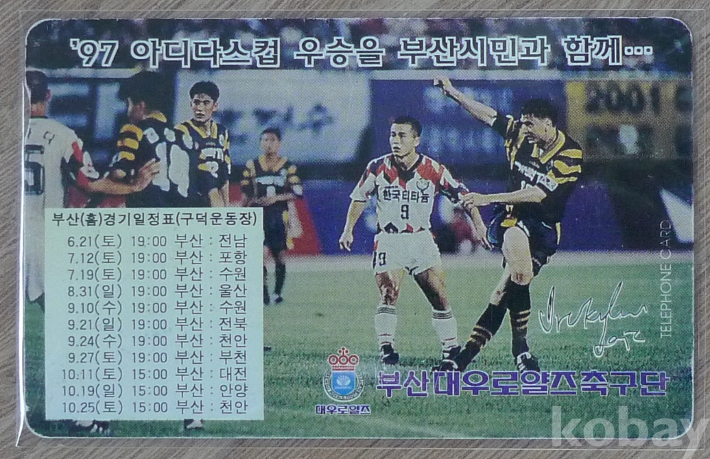 '97 아디다스컵 우승을 부산시민과 함께 광고 전화카드 - 프로축구 부산 대우 로얄즈 축구단 -