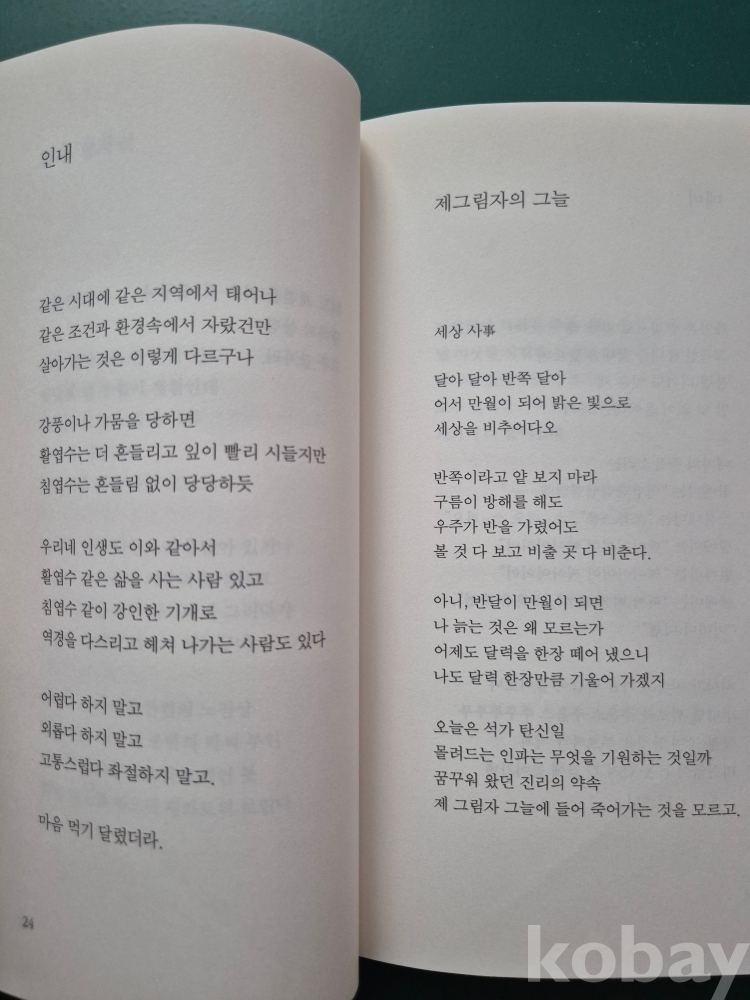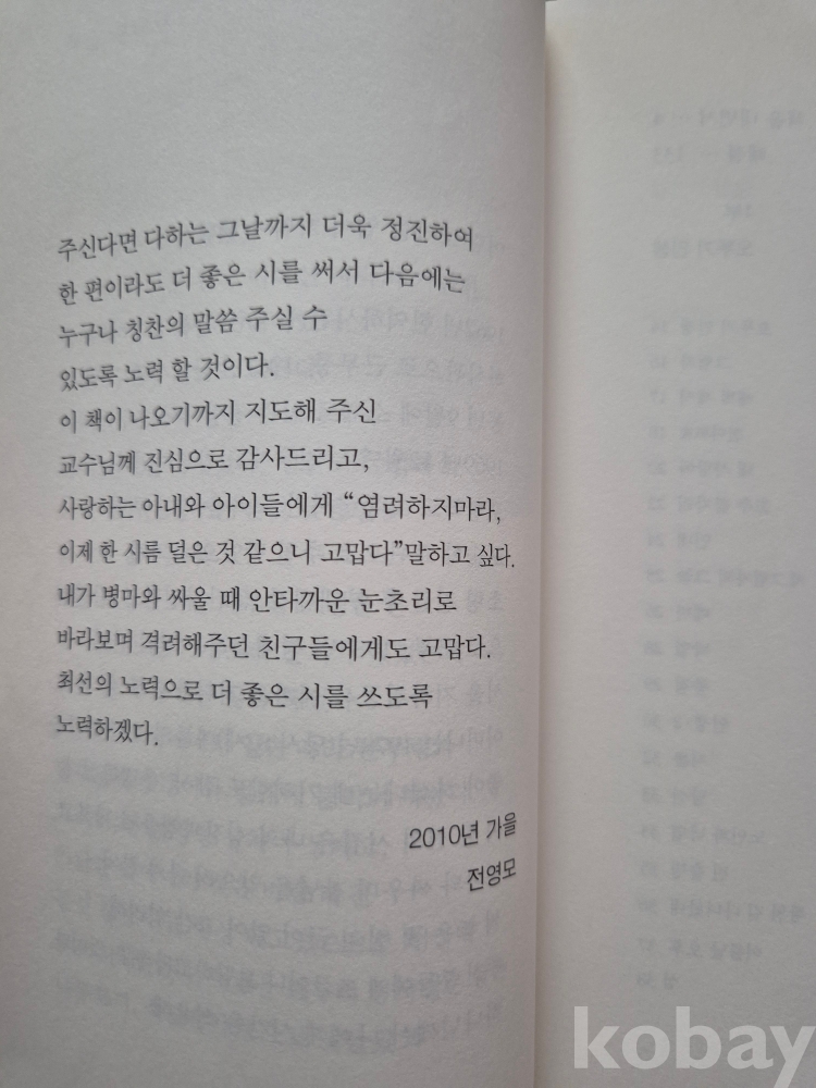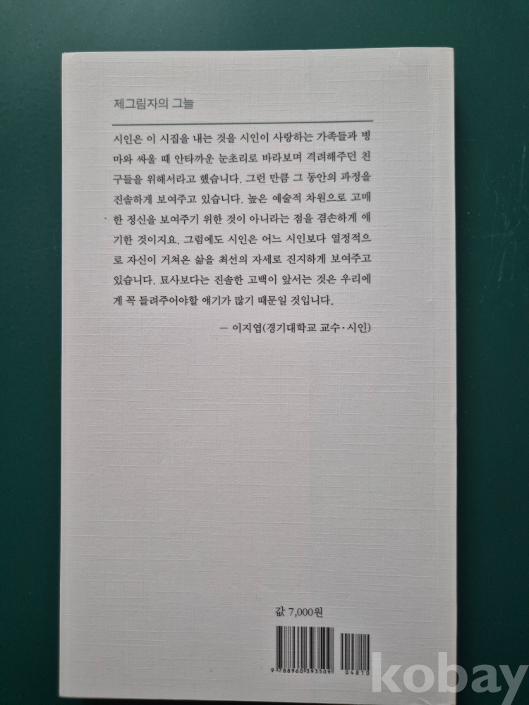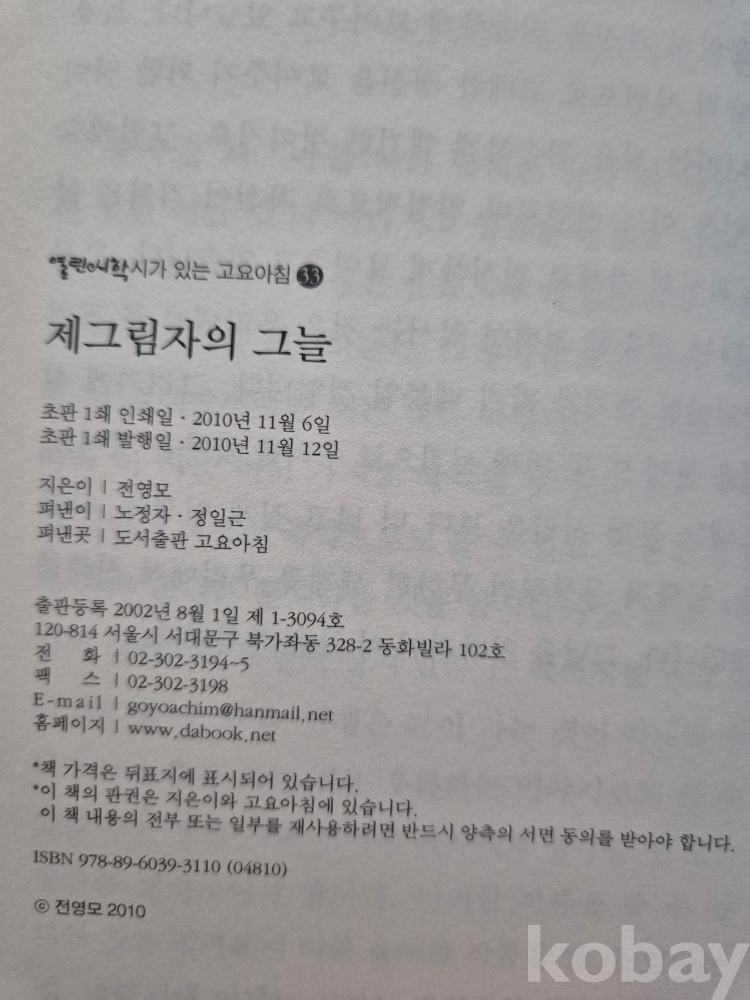 2010년 발간한 첫 시집 『제 그림자의 그늘』