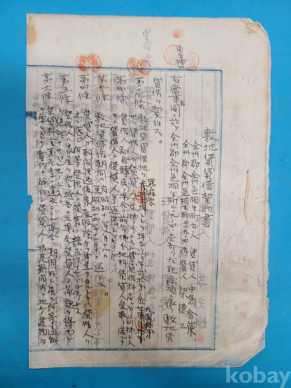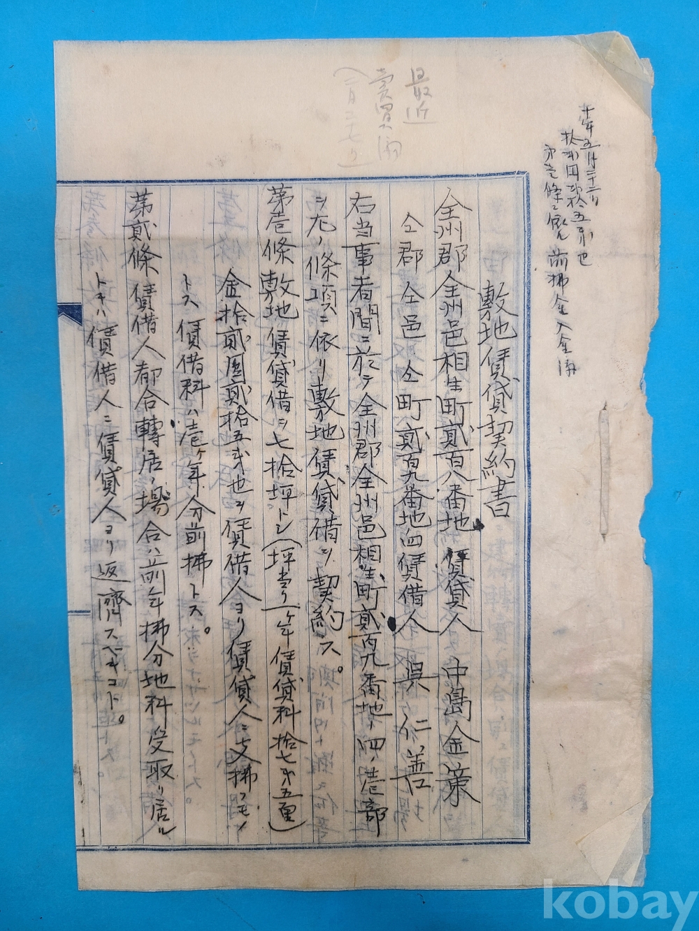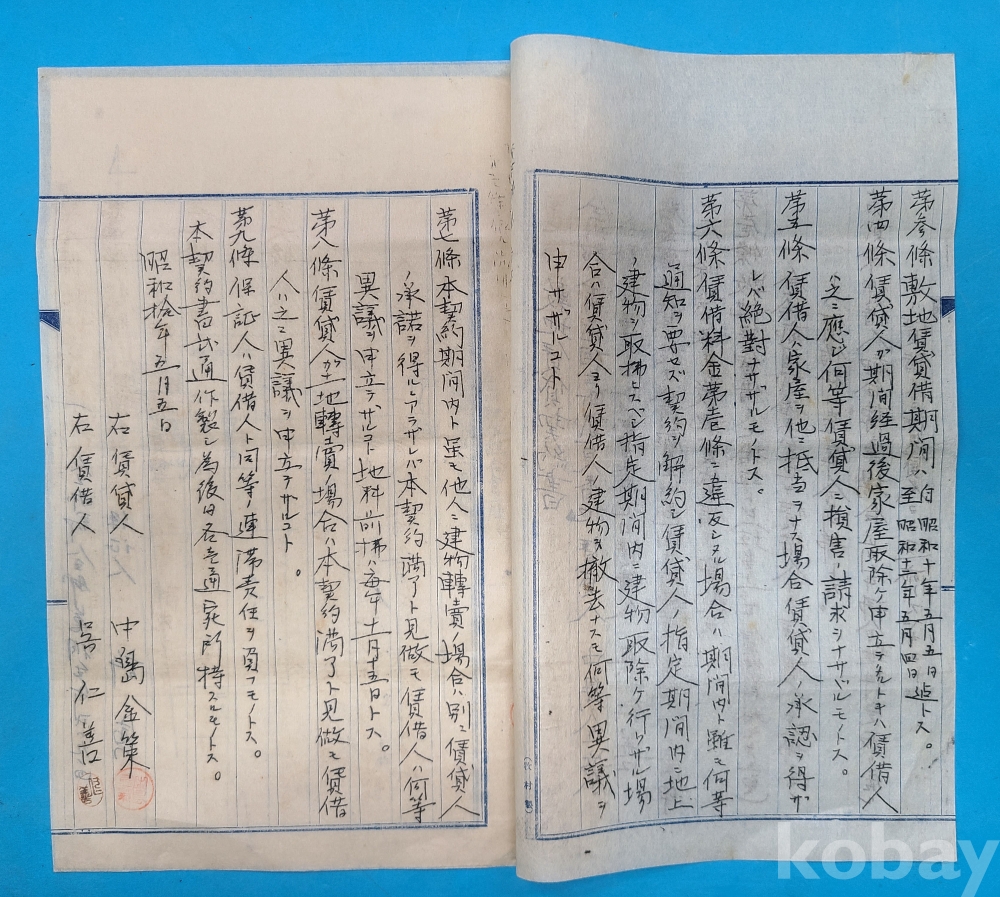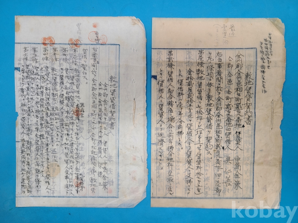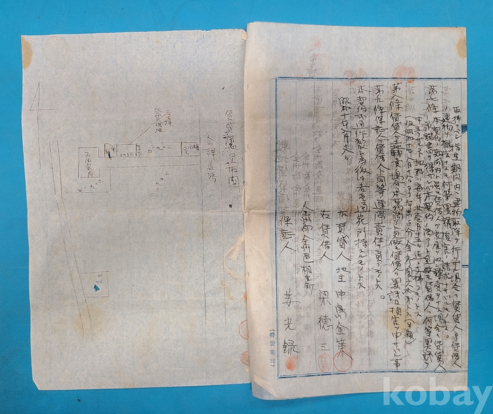 소화10년(1935년) 全州郡 全州邑 상생정 209번지 敷地賃貸借契約書*말미에 도면이 첩부되어 있다