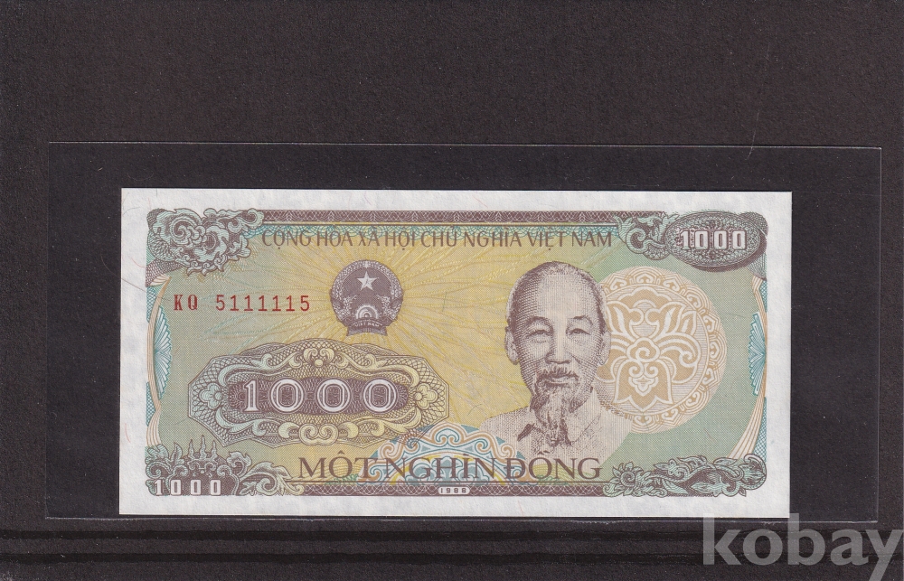 *베트남 특이번호 지폐 모음展* 1988년 1000동 KQ 5111115 - 5봉 레이더 미사용 지폐