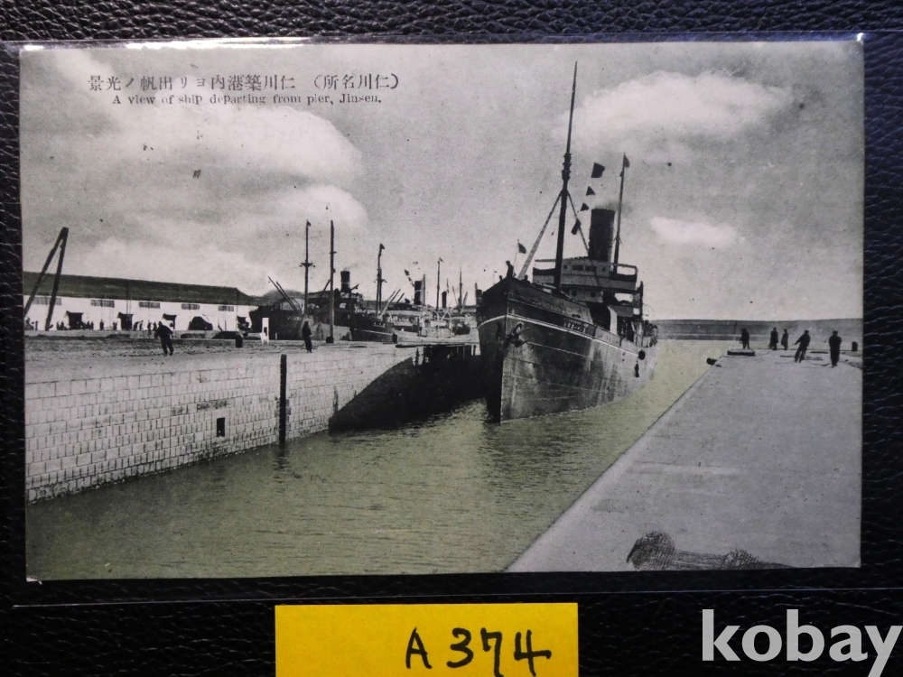 ▣인천, 축항, 인천 독, 인천 부두/귀함/일제강점기 사진엽서, 그림엽서, 회엽서. A374, 사용 실체. 우표 첩부.