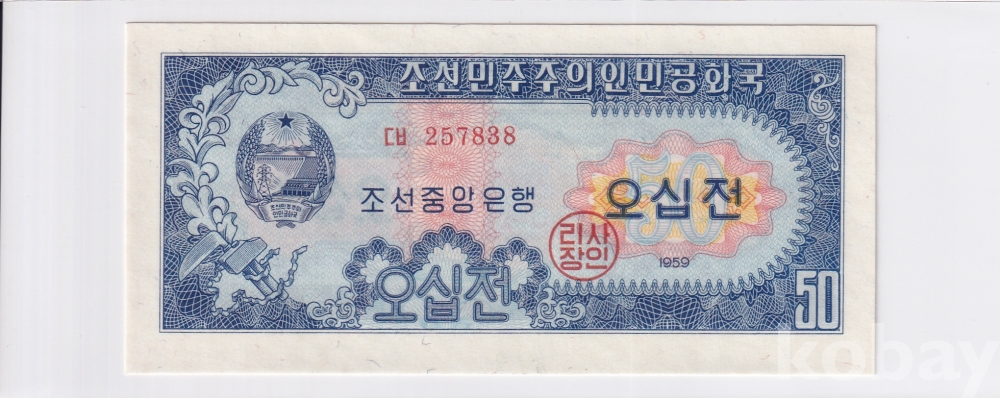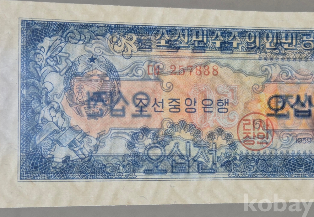 -희귀- 윗동네 1959년 2차 오리지널 지그재그 투문 오십전 미사용 지폐