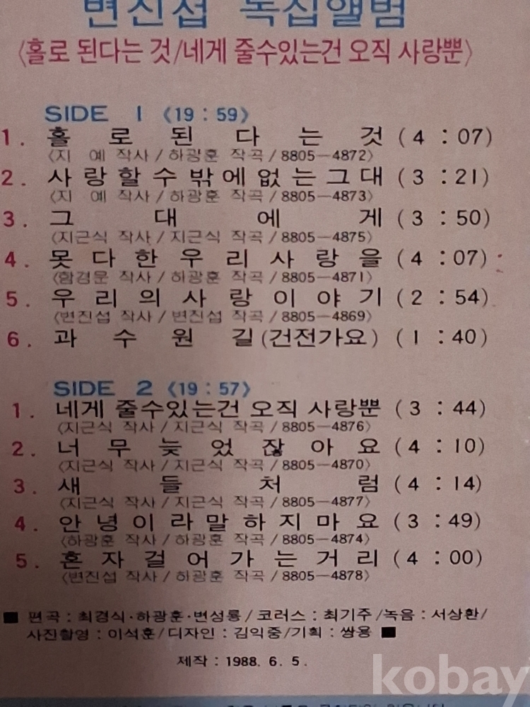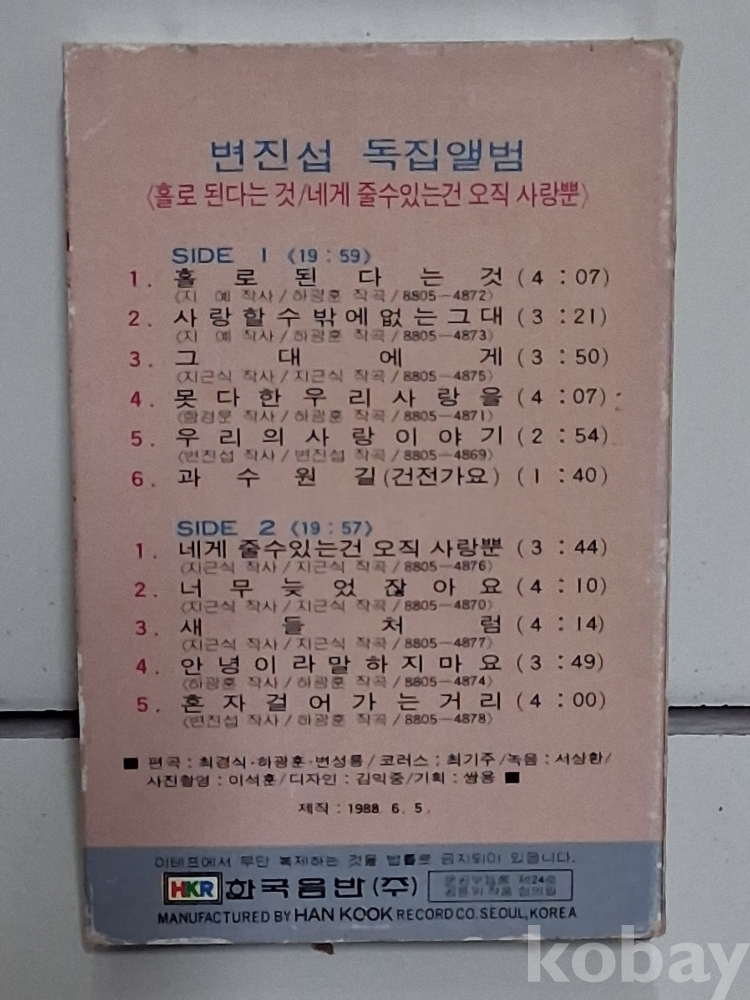 사오기, 변 진 섭 독집앨범 ,,,,,카세트테이프