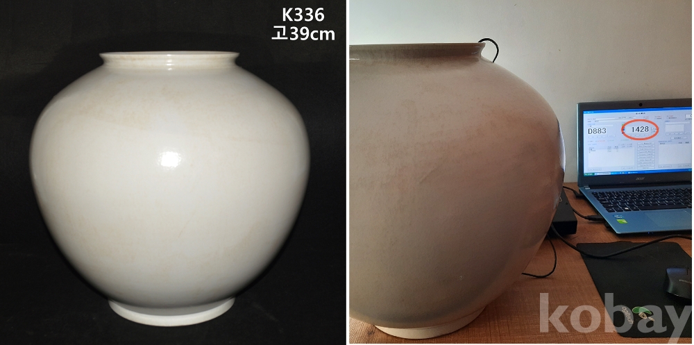 일몽갤러리에서는 같은 가마에서 나온 것으로 생각되는 이런 백자 항아리를 다양한 크기로 몇점 수장 중인데, 그 중에서 2점을 “양자검측(QRDS:Quantum Resonance