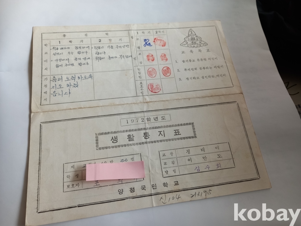 신 103) 생활 통지표/ 부산양정국민학교