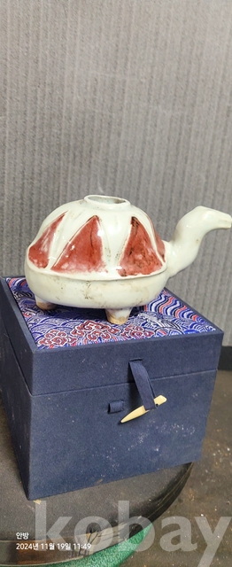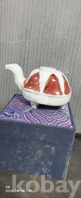 c-97.고급상자에담긴 오래된 밀납관지가있는 진사거북문양연적
