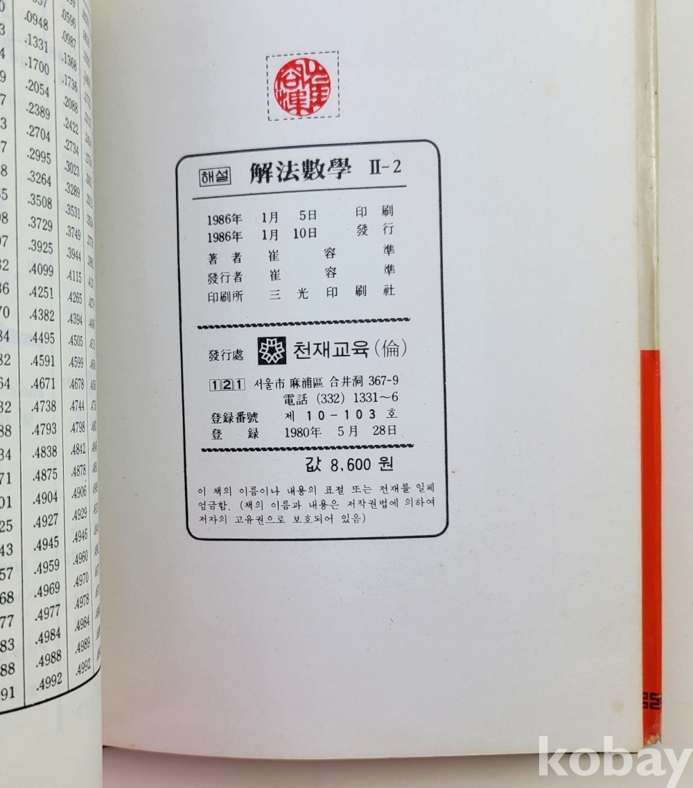물 품 명 | 해설 해법수학(2)-2 : 완전신판 / 총1권 / 최용준 / 1986년 초판 / 천재교육 |