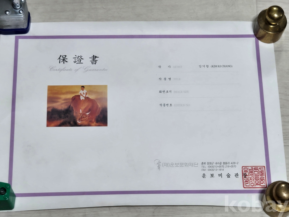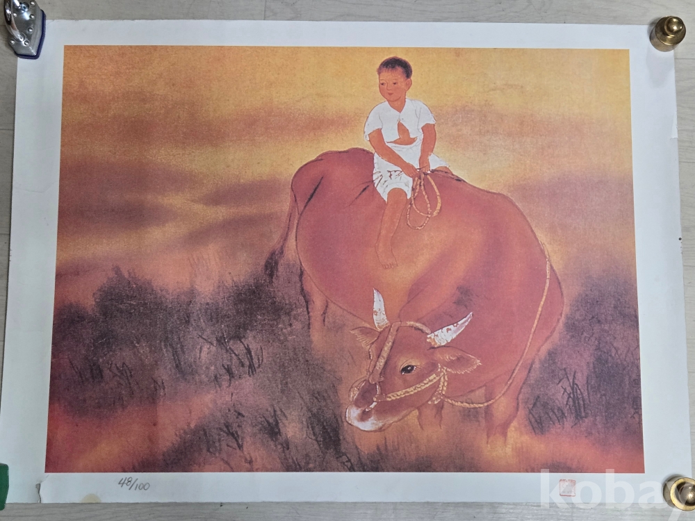 진품보증 - 운보 김기창 오리지날 옵셋판화 15호 <소와 소년>