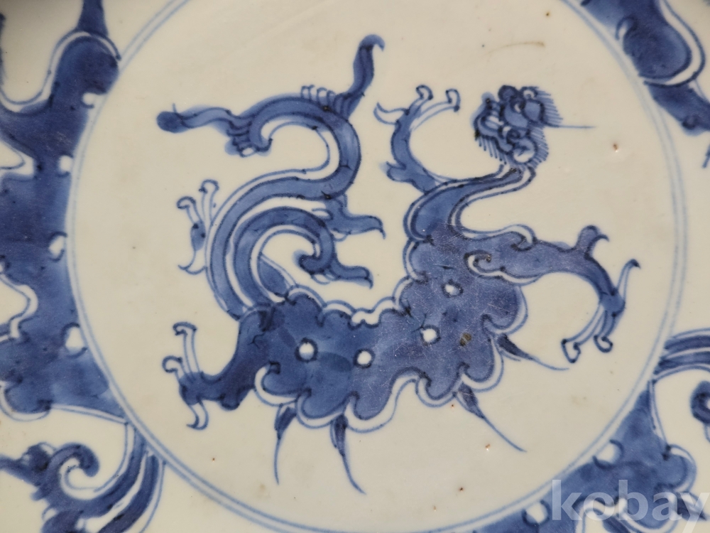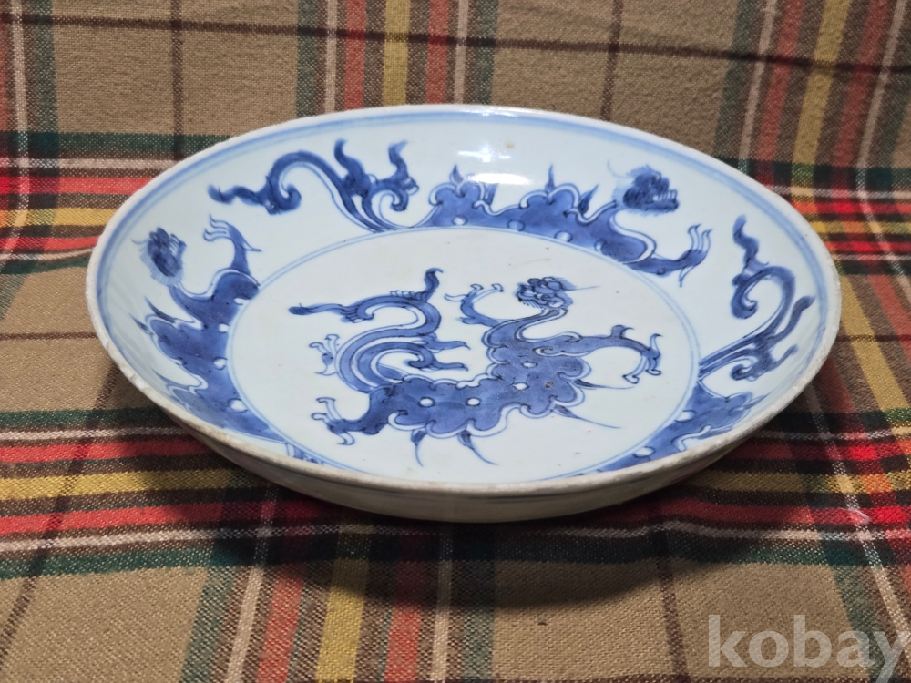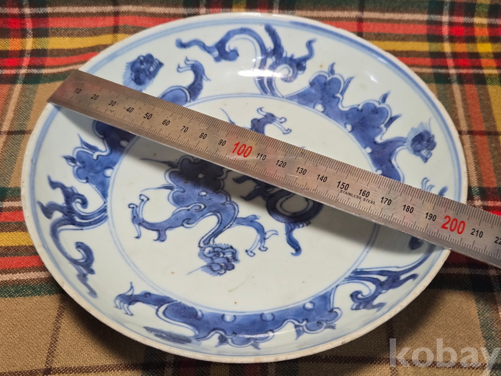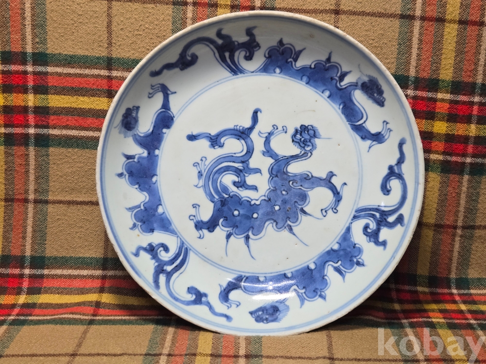 <투킴스> 중국 청대 청화백자 용문 접시.