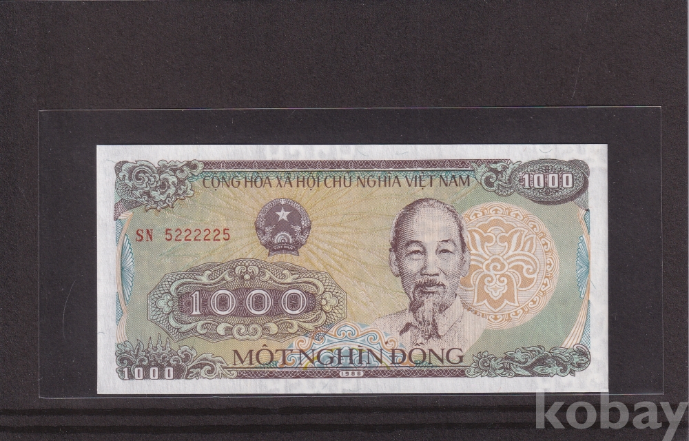 *베트남 특이번호 지폐 모음展* 1988년 1000동 SN 5222225 - 5봉 레이더 미사용 지폐