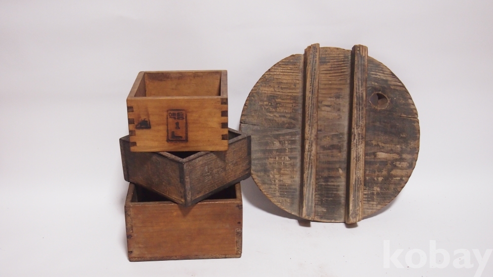 전통 생활사 전래품/木됫박 3점, 오래된 다용도 木뚜껑입니다. /총4점