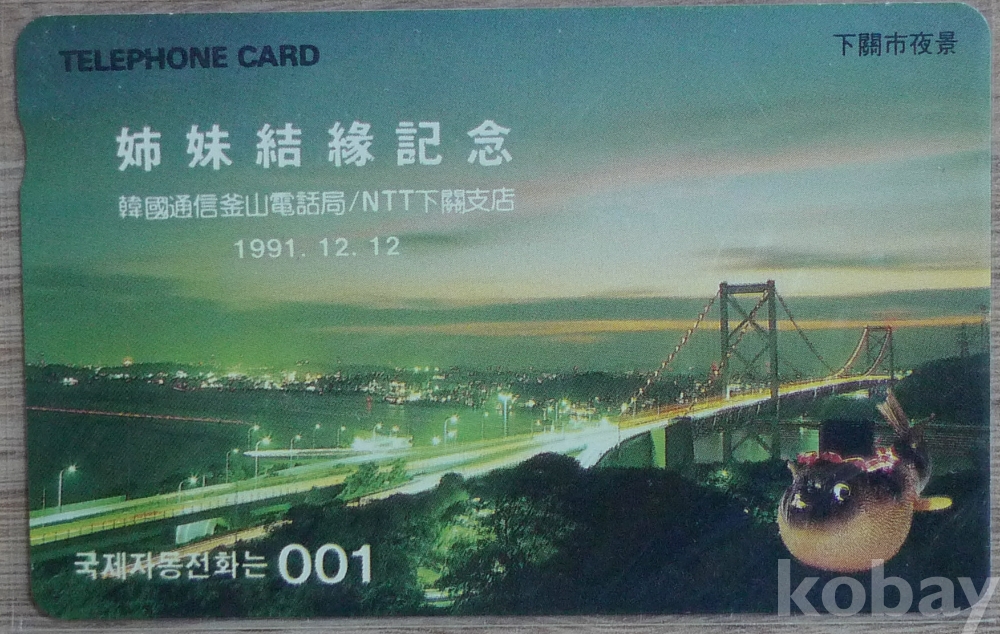1992년 부산시-하관시 자매결연 기념 광고 전화카드