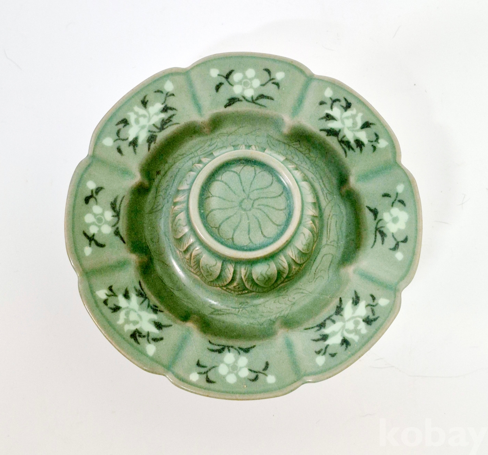 우리 고려 청자는 세계 도자사 중에서 단연 선두를 차지하는 명품 입니다. 그중 특히 상감청자는 으뜸인데, 여기 이 자그마한 잔탁은 정교함과 아름다움에서 최고품 임이 틀림 없습니다.