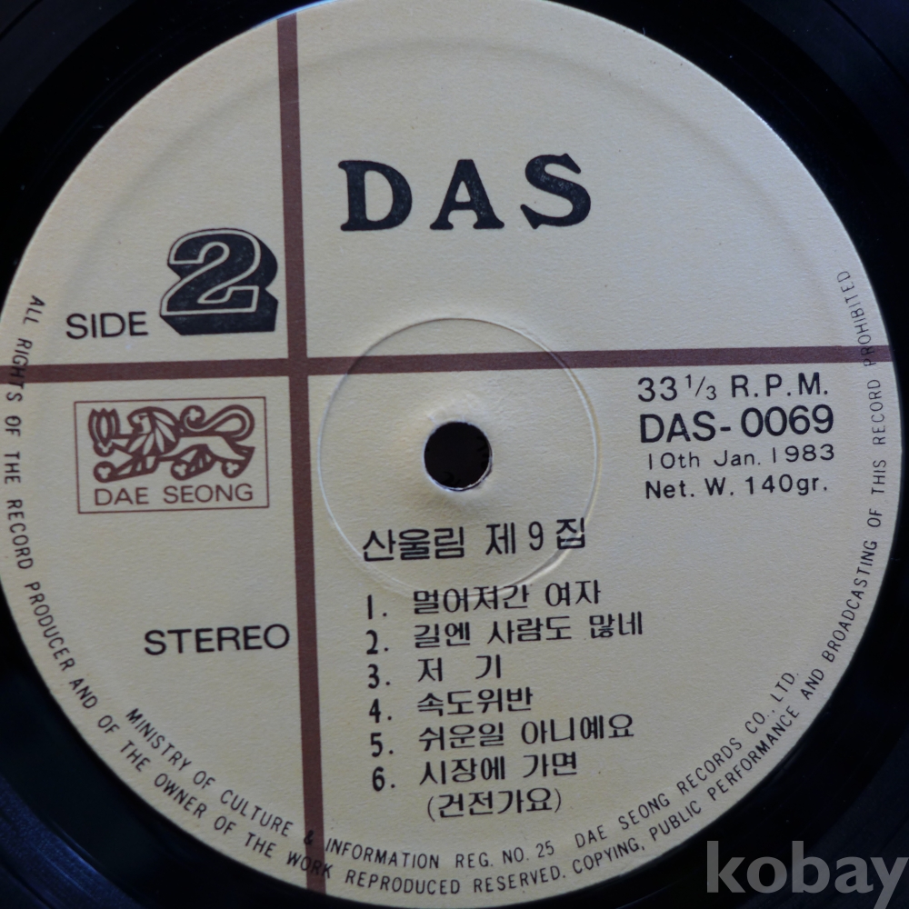 LP음반: 산울림 제9집 " 웃는 모습으로 간직하고 싶어,멀어져간 여자" 등 수록 앨범