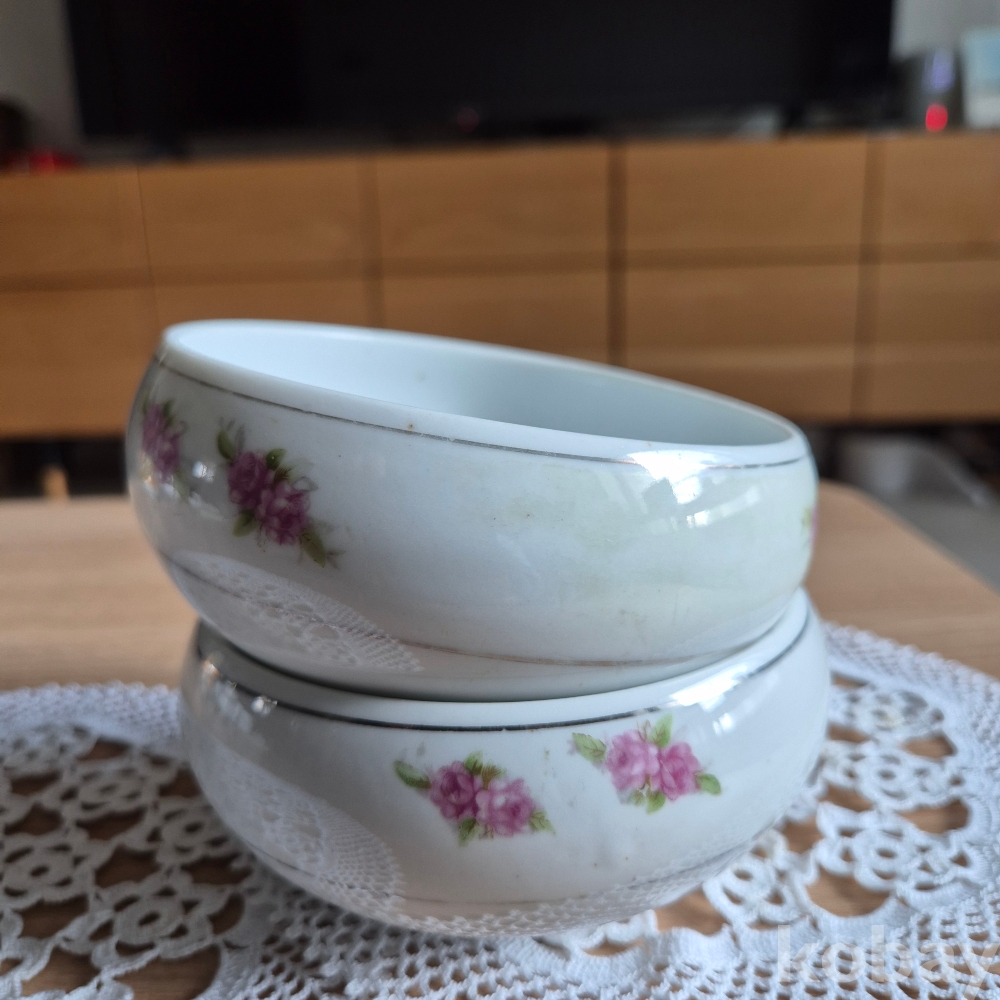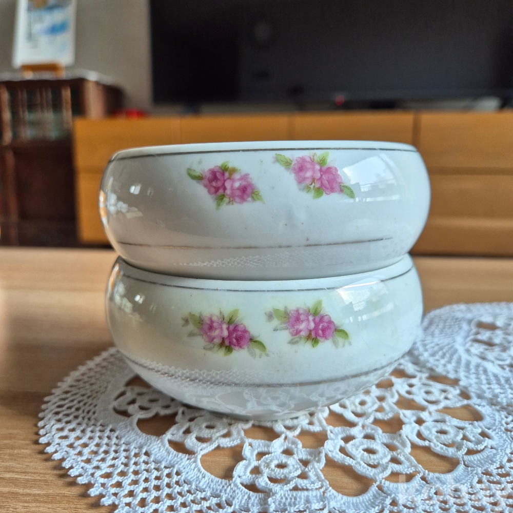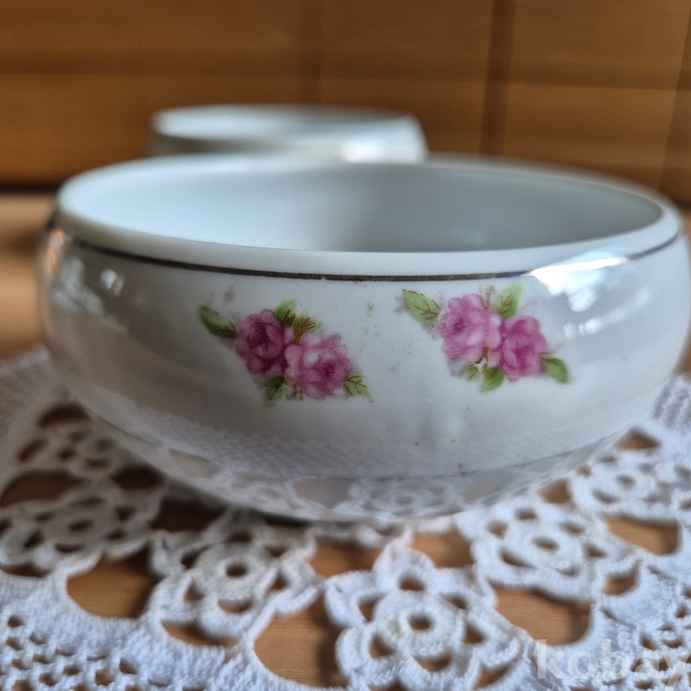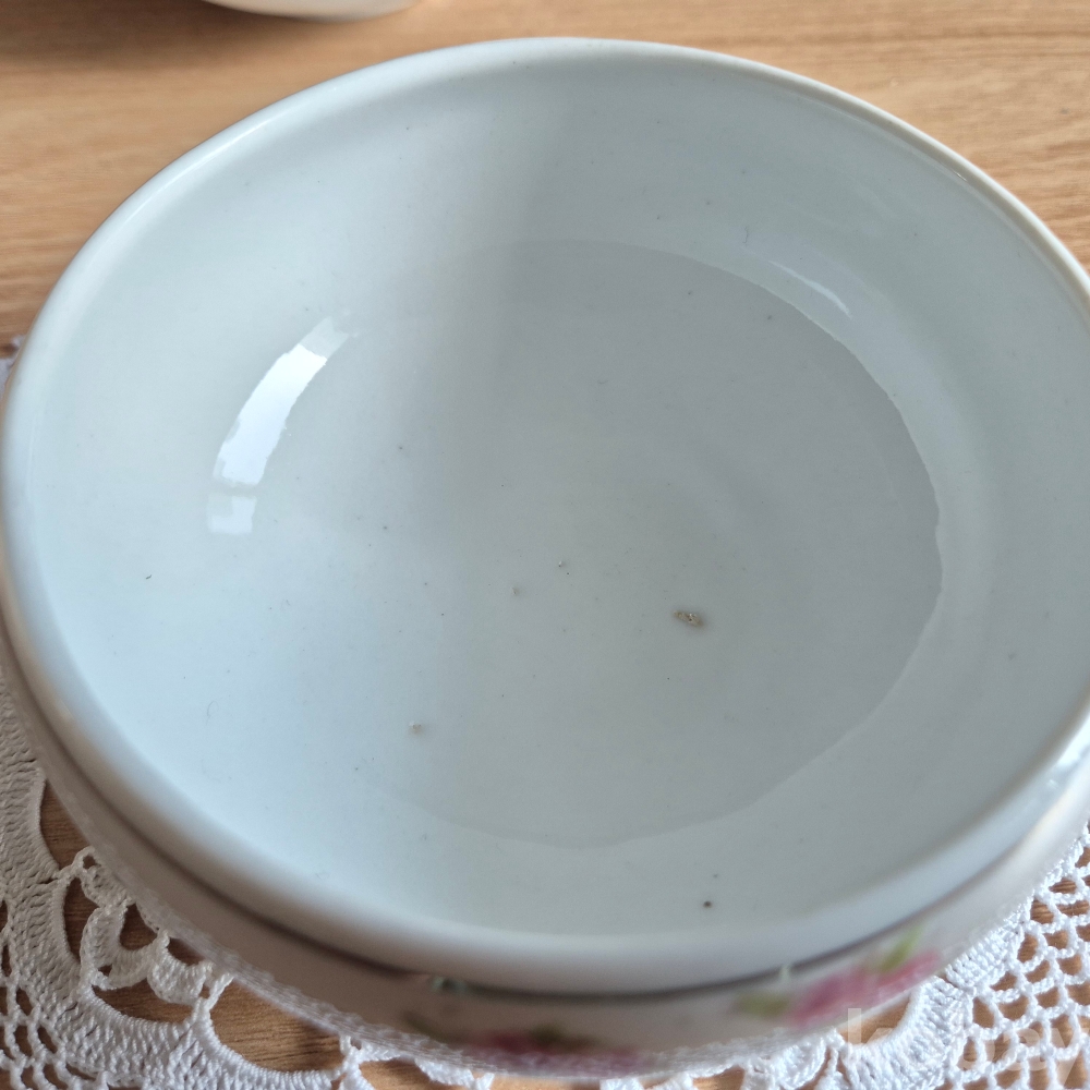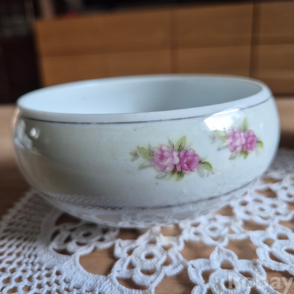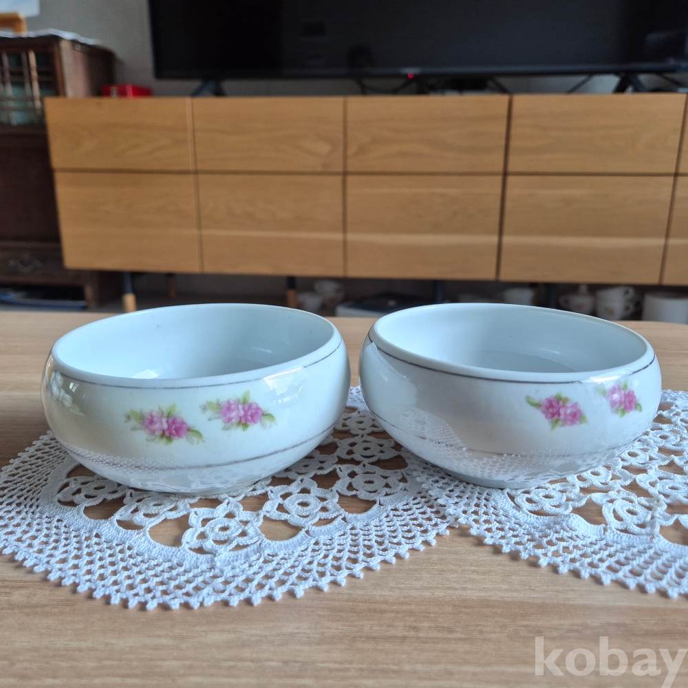잔꽃 전사 무늬와 얇은 금선 장식이 당시 가정용 식기의 분위기를 잘 보여줍니다.