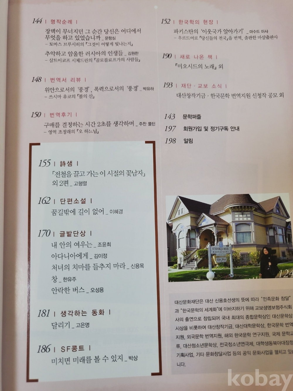 1. 대산문화 31호, 대산문화재단, 2009년, 198쪽, 상태 상, 사진 참조