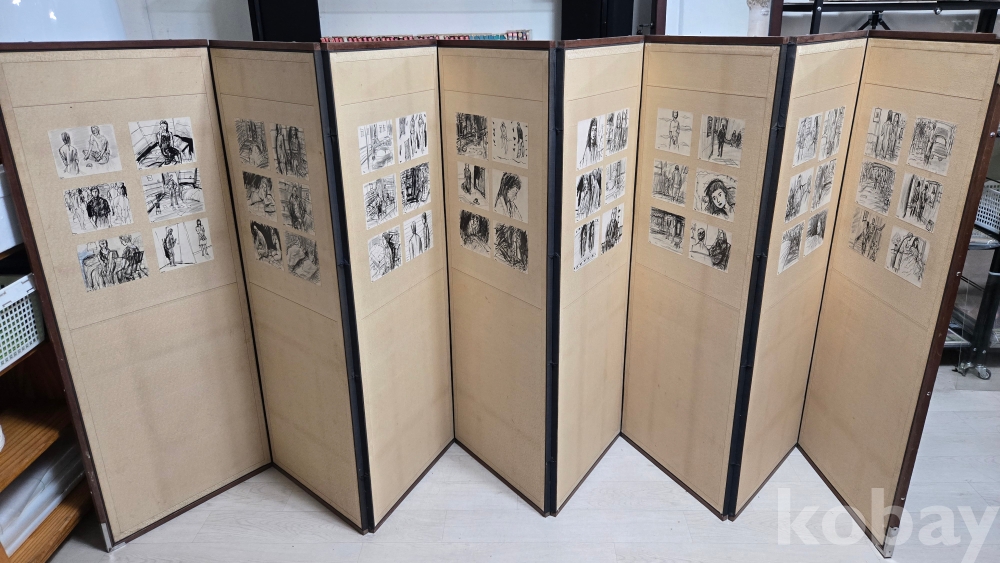 48점의 오리지날 작품들은 사진보시듯 8폭의 병풍에 표구되어 있습니다.