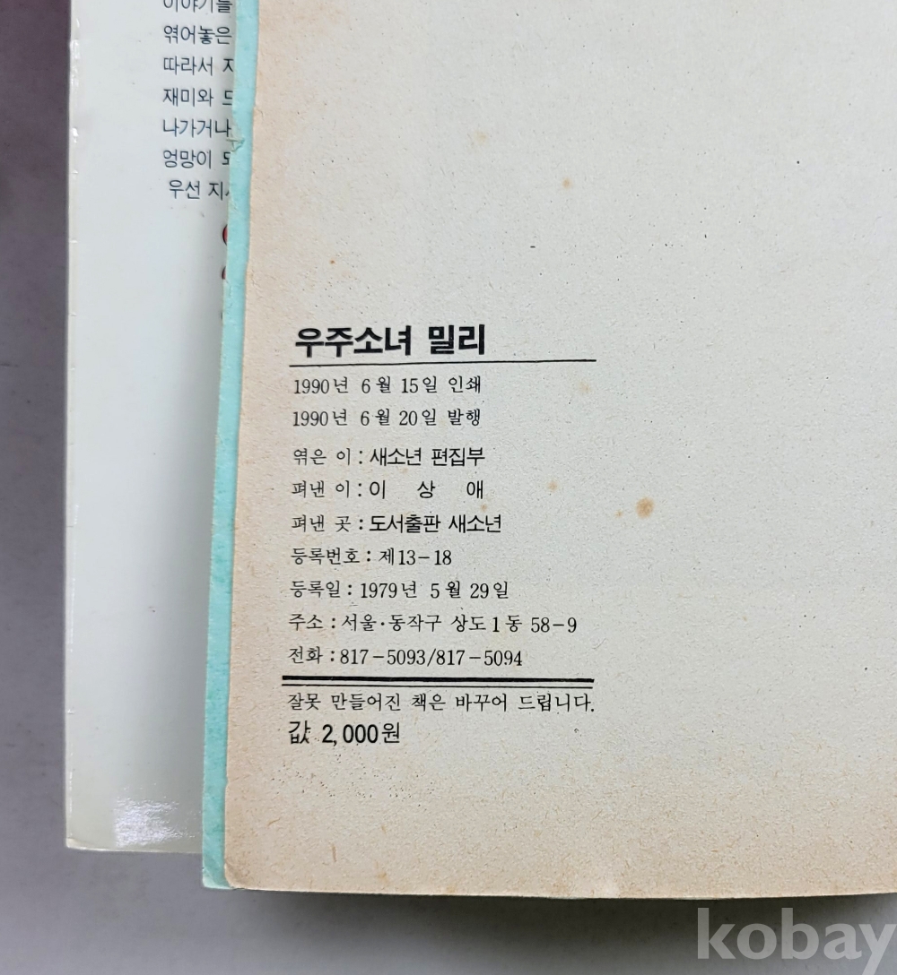 물 품 명 | 우주소녀 밀리 / 새소년 게임북(15) / 1990년 초판 / 도서출판 새소년 |