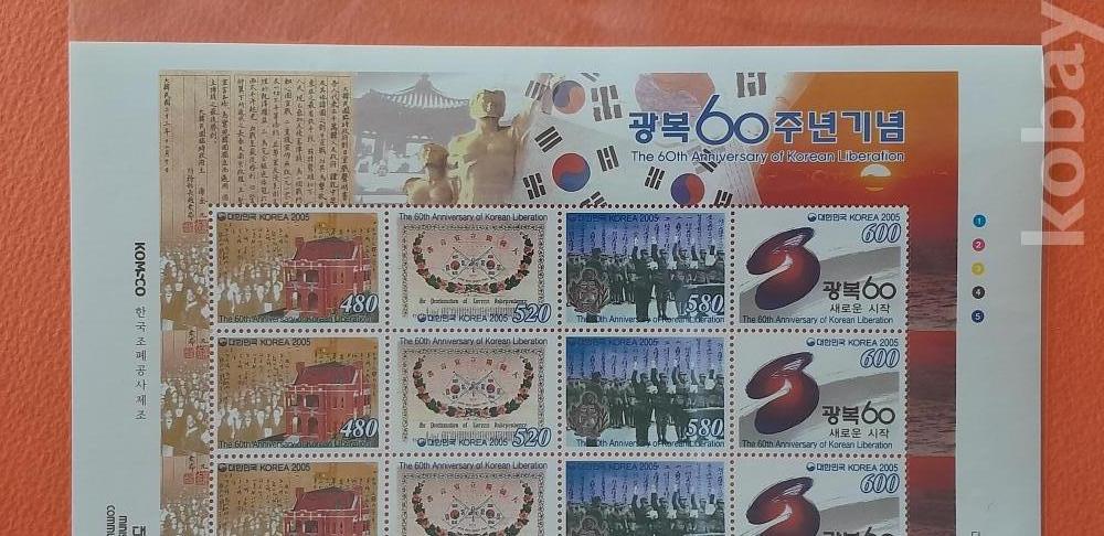 2005년 광복 60주년 기념 고액권 16매 전지 입니다.