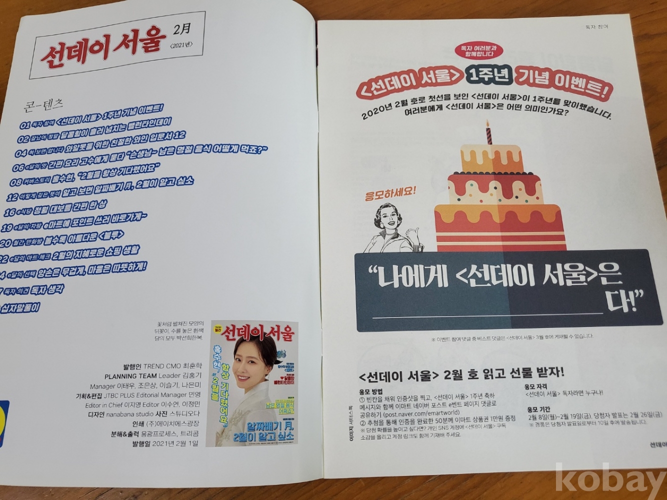1. 선데이 서울 2021년 2월호, 이마트, 2021년, 28쪽, 월간, 비매품, 이마트 소식지, 표지 모델(배우 홍수연), 상태 상, 사진 참조