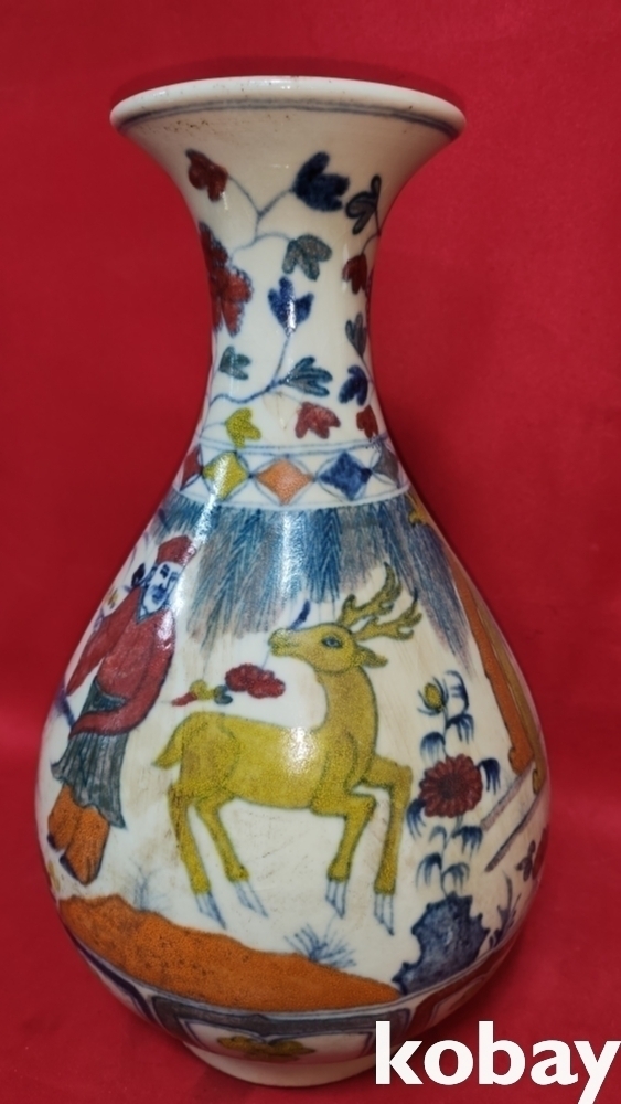 연대는 짱짱한 오채 유리홍 수림.인물.사슴문양 천구병입니다,