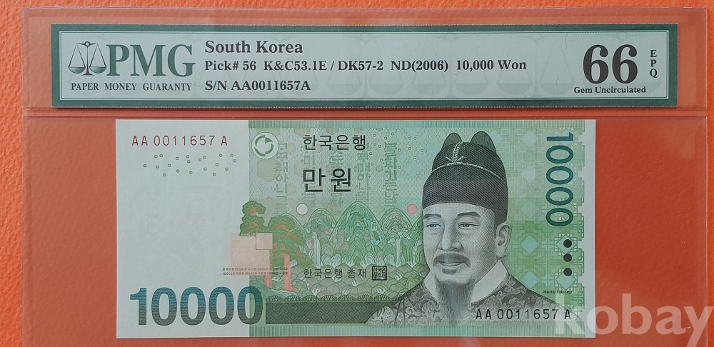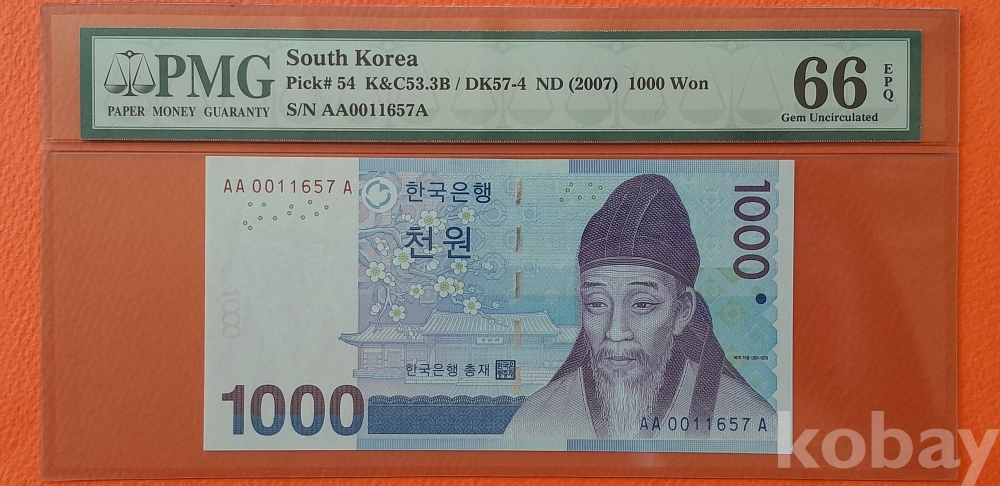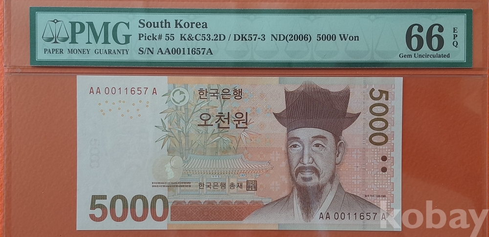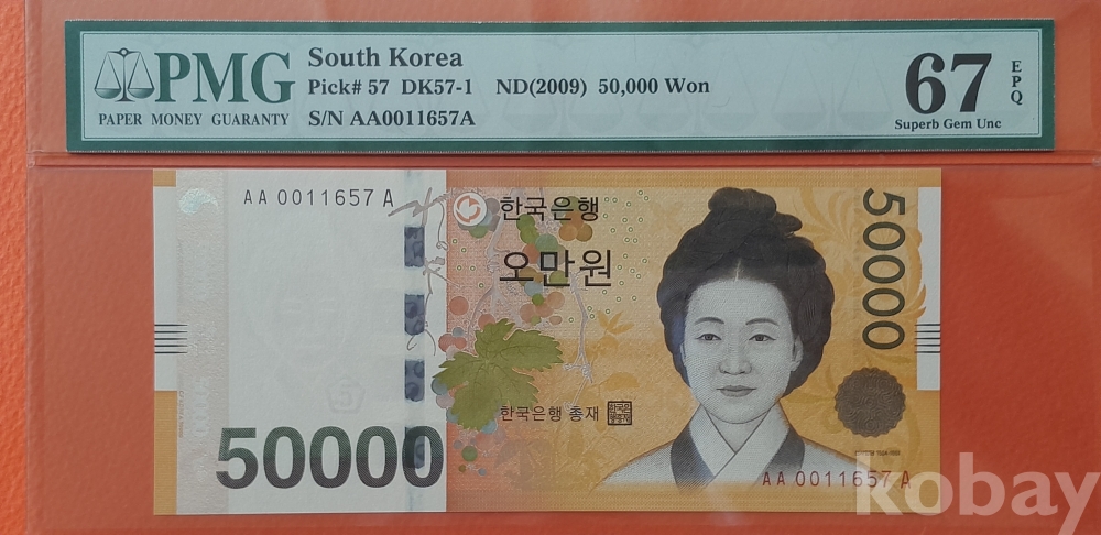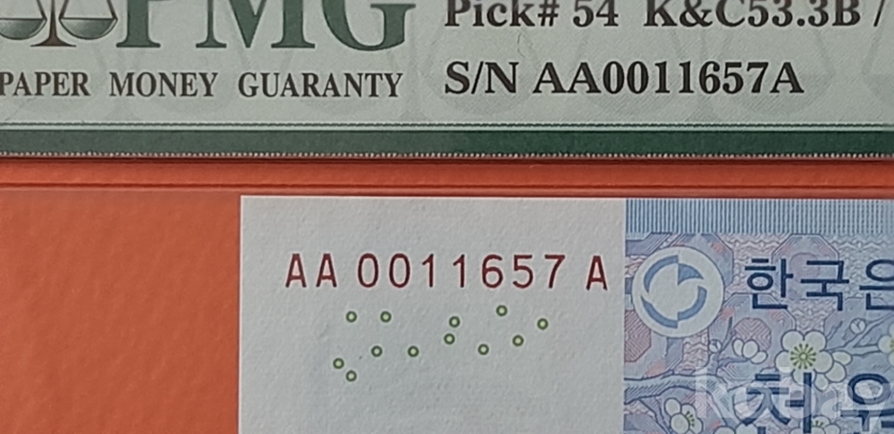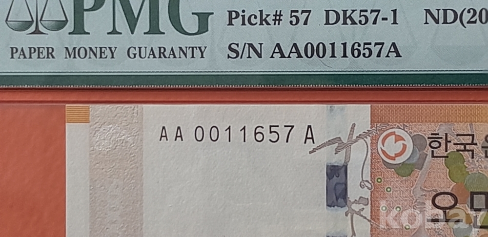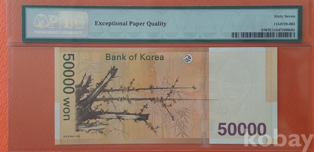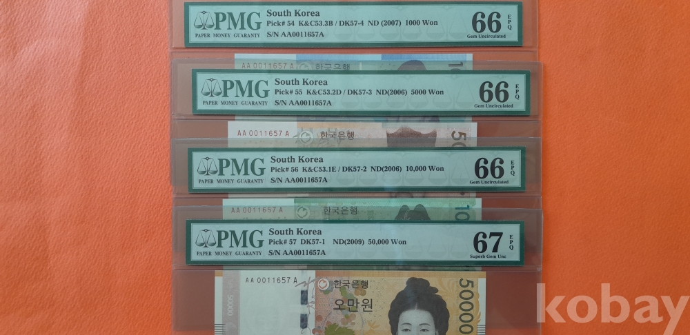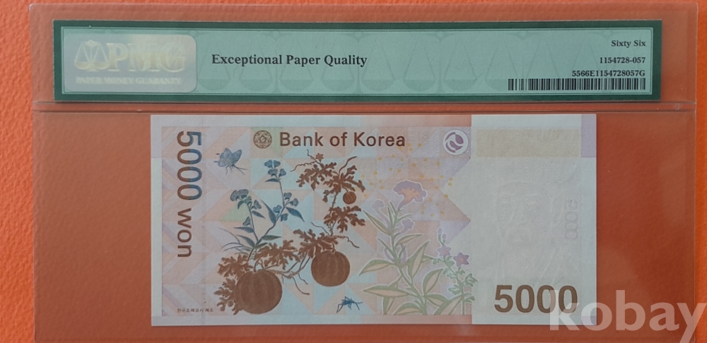 천원, 오천원, 만원권은 PMG 66등급, 오만원권 PMG 67등급 입니다.