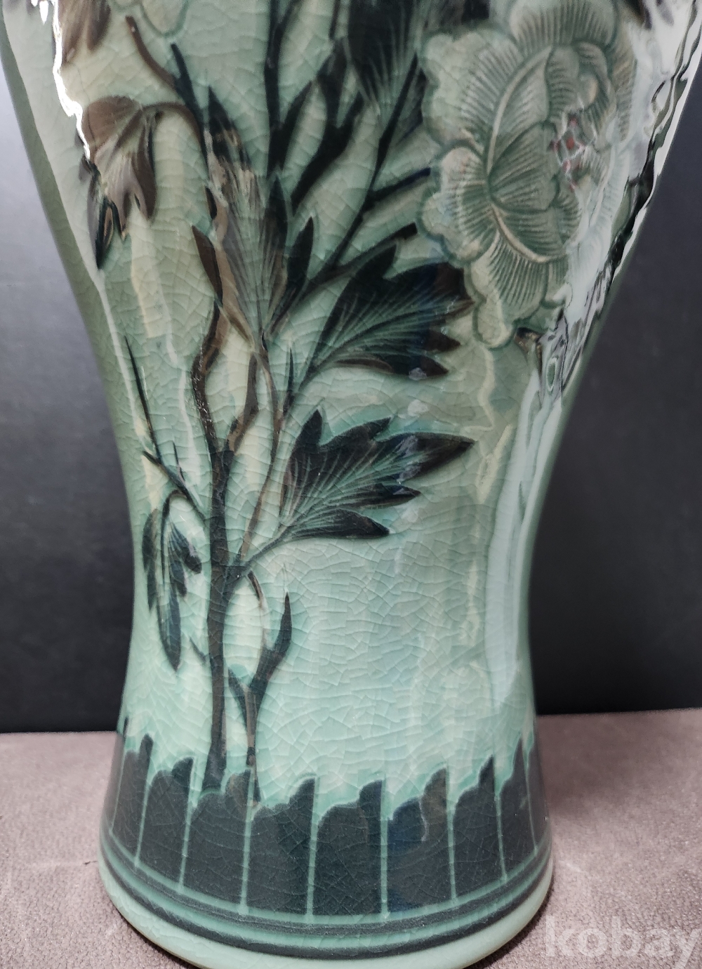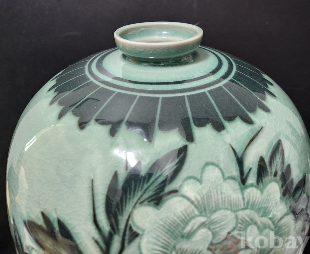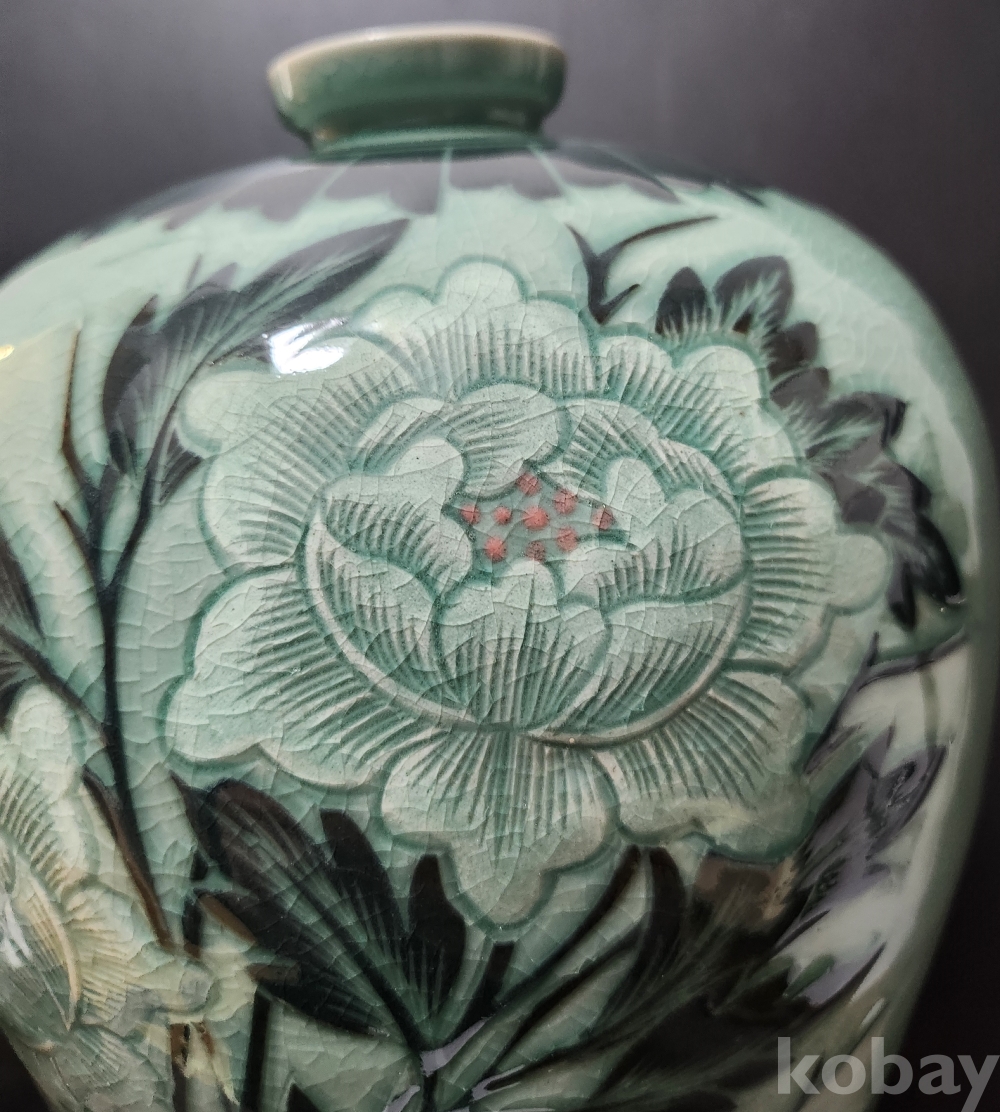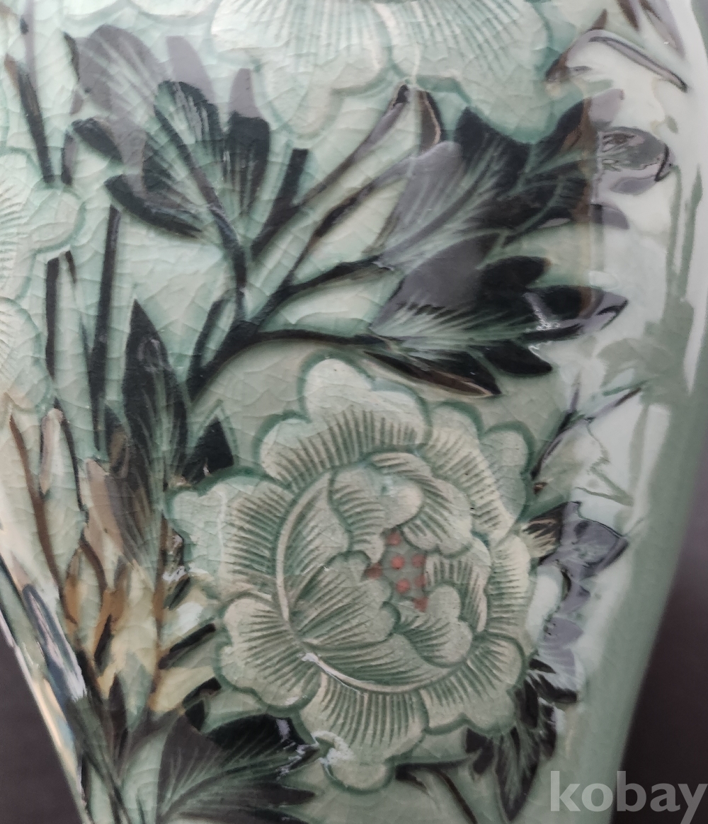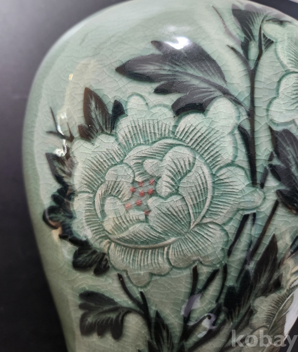 상민요 相敏窯 "이상봉" 도예가의 청자상감음각진사모란문주병 靑磁象嵌陰刻辰砂牧丹紋酒甁