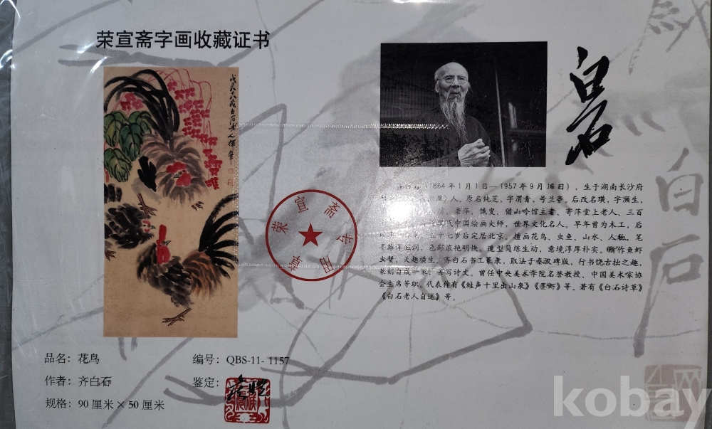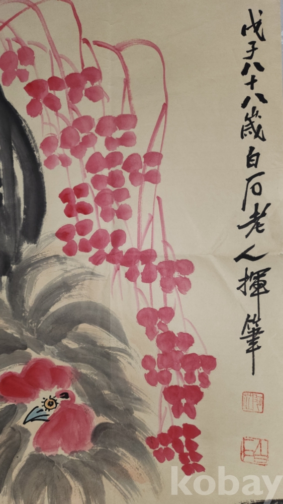 감정서(鑑定證書)가 함께하는 중국화가 제백석((齊白石) 화조그림 (花鳥畵)입니다,