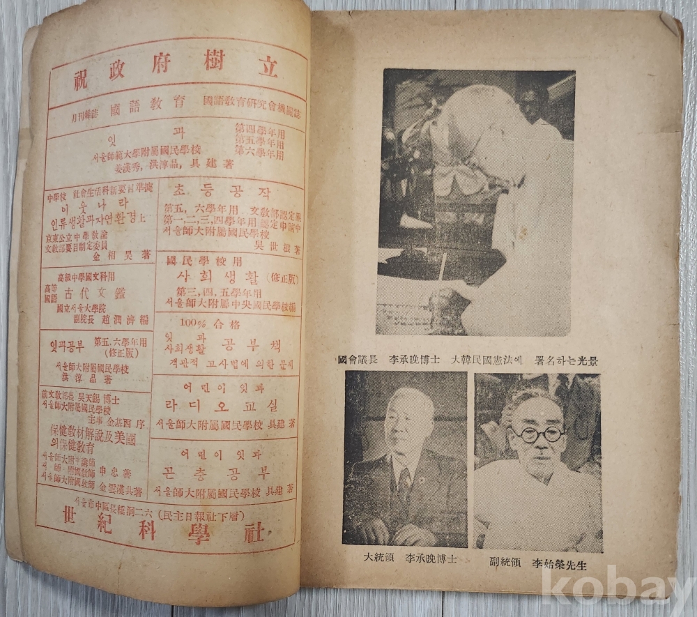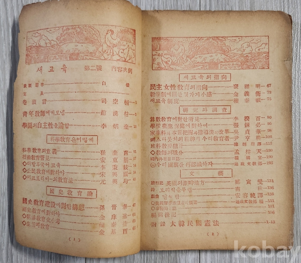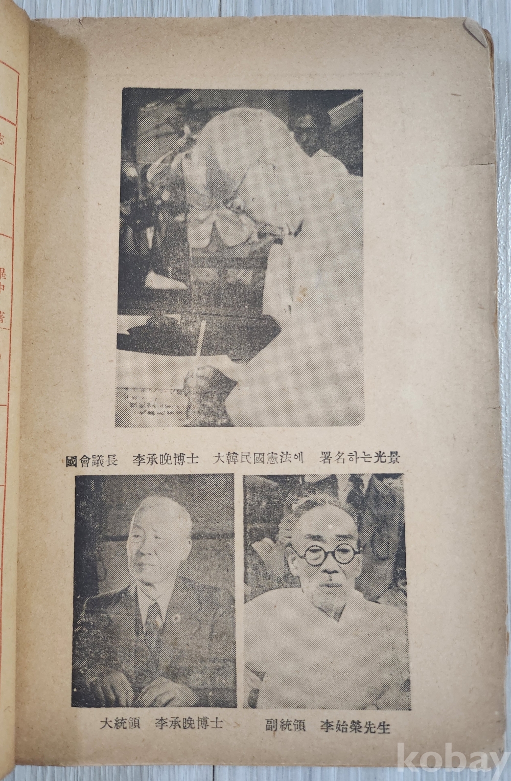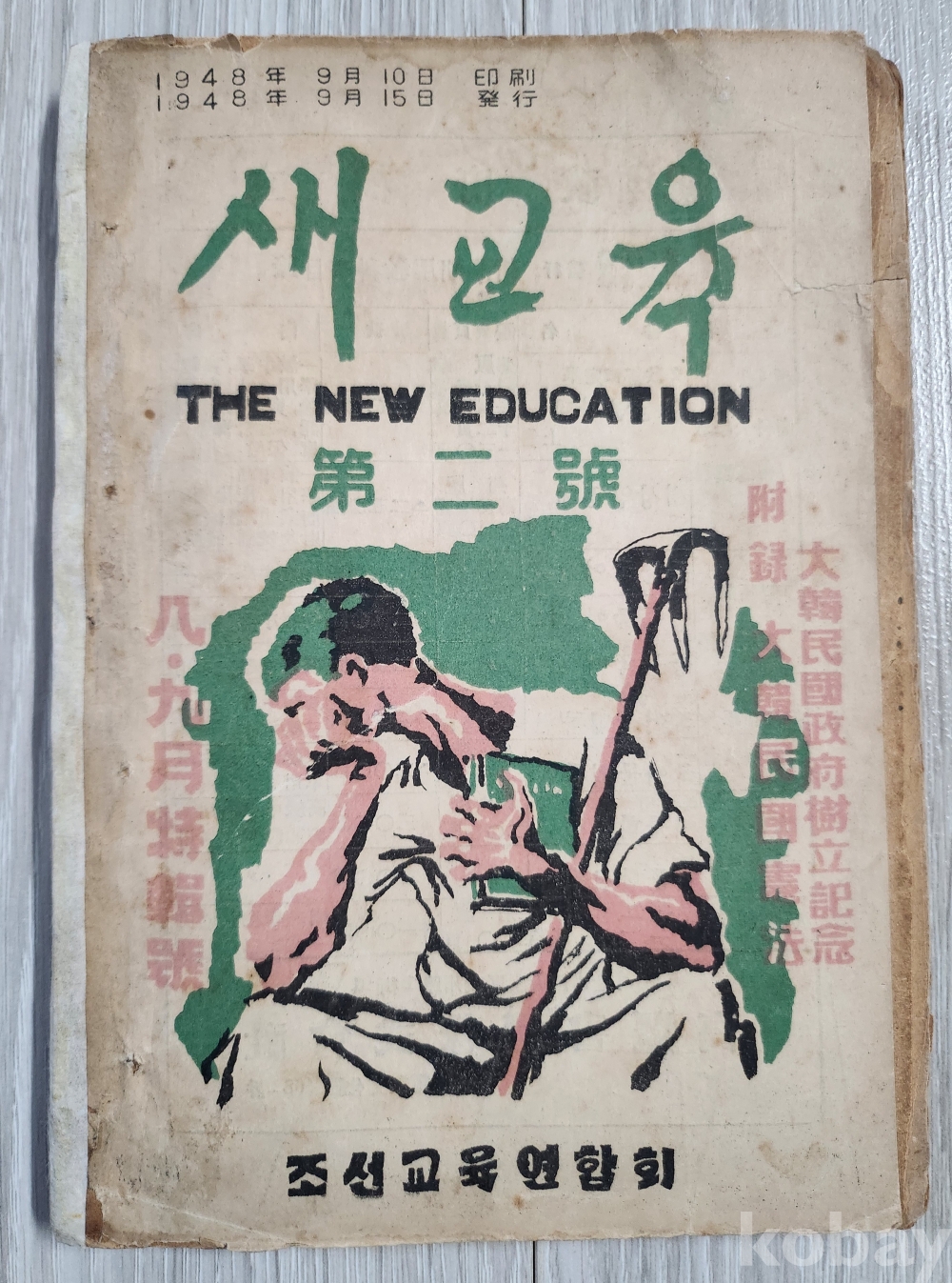 1948년 발간된 새교육 제2호 입니다 대한민국 정부수립사진과 이승만 전대통령의 사진이 수록되어 있습니다 페이지 마지막에 대한민국헌법1-13페이지이고 책마지막장 끝까지 있습니다