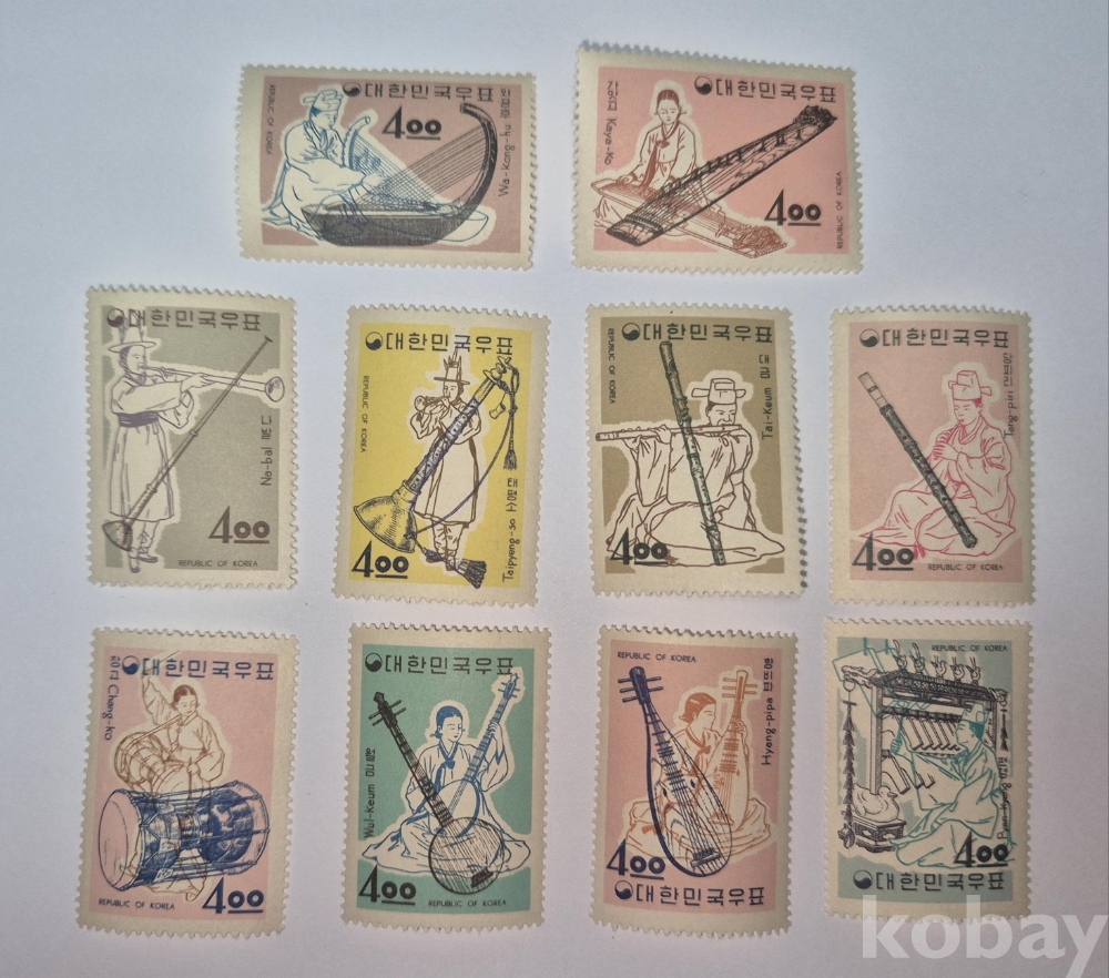 1963년 발행된 '악기 시리즈 우표' 10종 세트입니다.