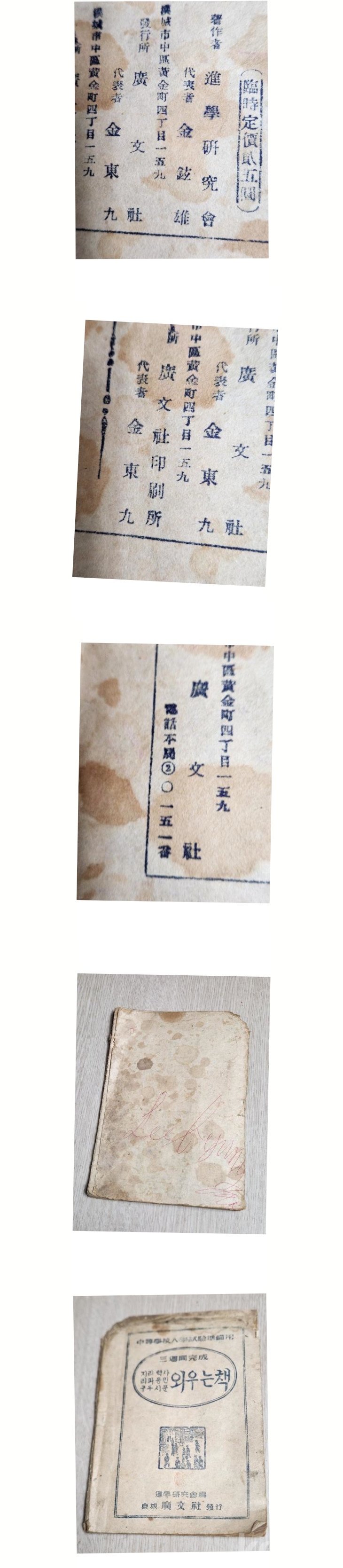 앞표지 왼쪽상단 약간뤠손