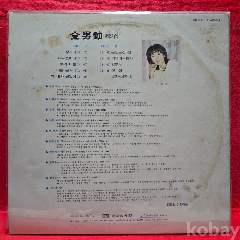 | 자켓상태 | EX : 약간의 마모, 모서리 찢김 존재 | 음반상태 | EX : 재생에 영향 없는 가벼운 기스 존재 | 발매정보 | 초반 | 가사지여부 | 무 |