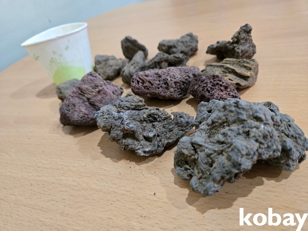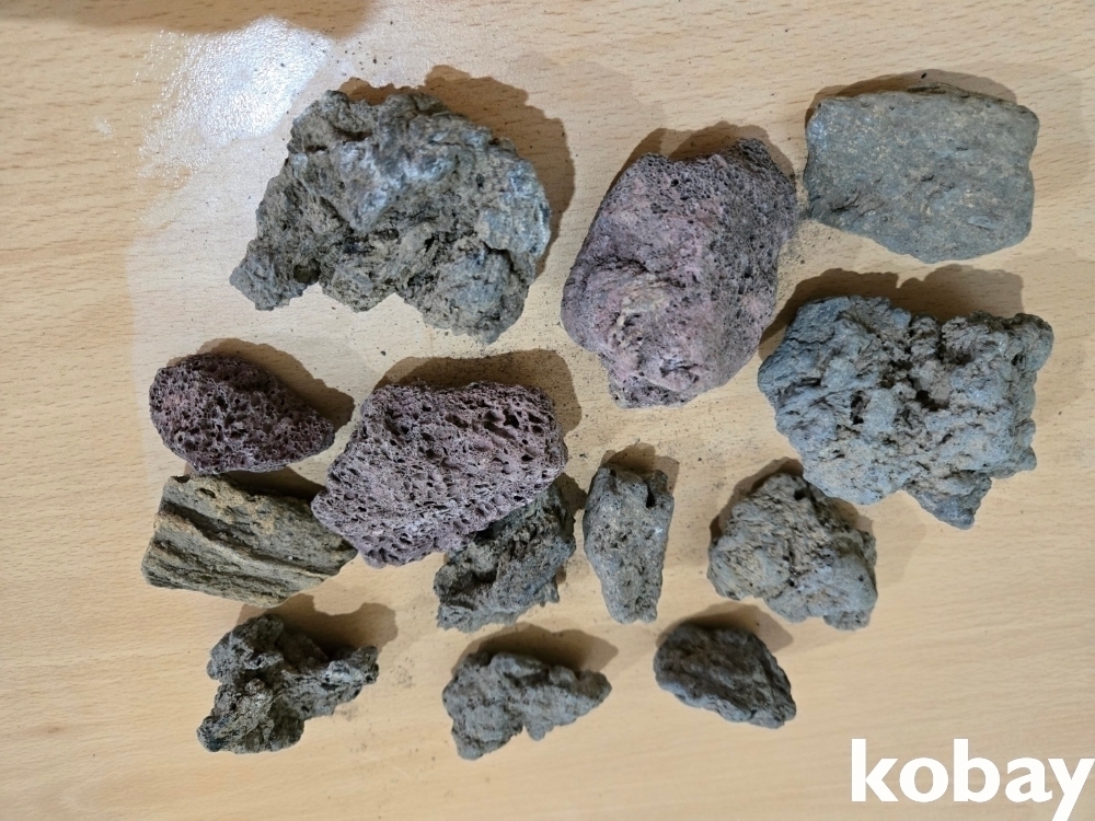 모양과 크기, 색감이 제각각 화산석 13개 입니다.