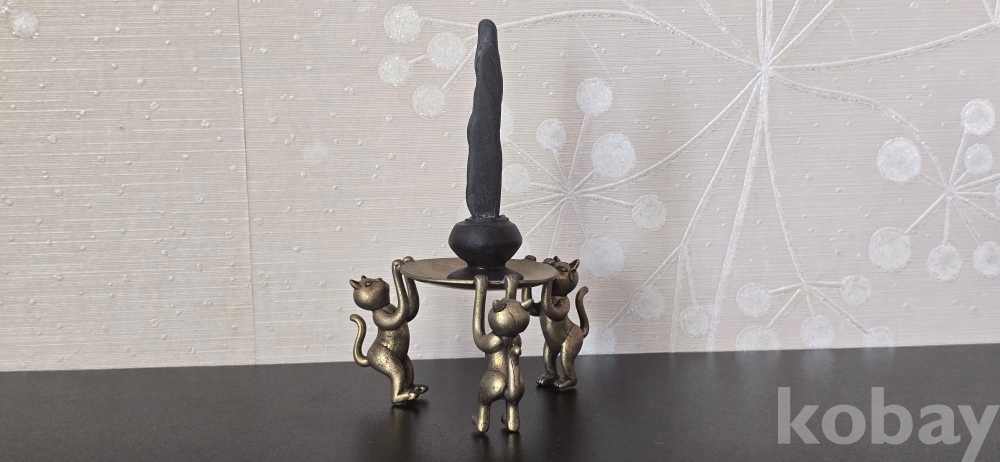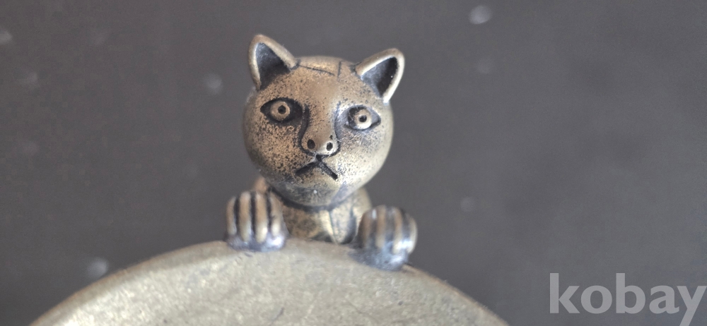 @. 옛날 오석 깨돌을. 동(브론즈) 고양이 받침에 연출.