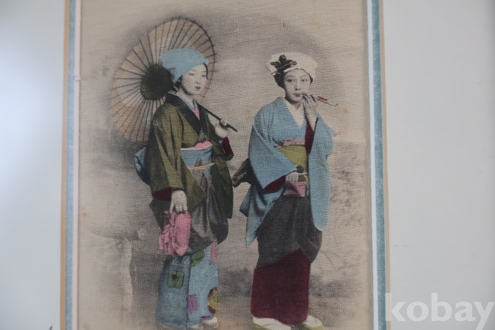 액자 처리 된 명치기의 사진 두 미인 임니다 비단 위에 처리 된 원본 이며 액자는 세월의 칩이 보임니다 당시 사진에 채색 처리 된 명물 임니다 유리역시 박물관 유리 임니다 빛 반사 금지용 유리