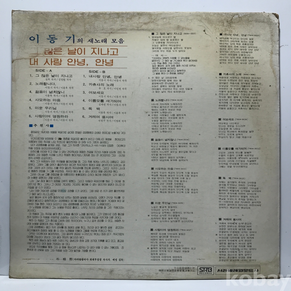 LP 83,750-33 이동기 - 그 많은 날이 지나고 / 내 사랑 안녕, 안녕 . 자켓 EX- 알판 EX+ 80 년 국내반